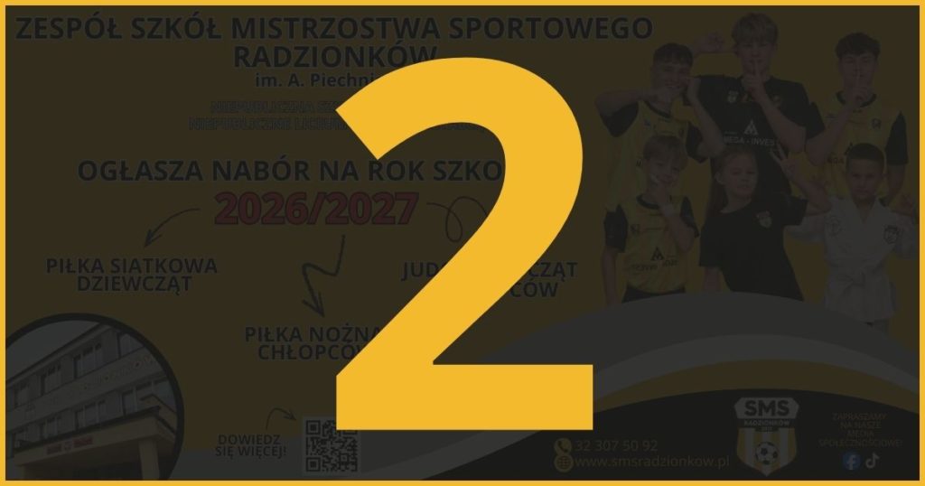 Zostały już tylko 2️⃣ dni ⏳🔥 do rozpoczęcia rekrutacji do Zespołu Szkół Mistrzostwa Sportowego Radzionków – Niepublicznej Szkoły Podstawowej i Niepublicznego Liceum Ogólnokształcącego! 🏫🏆⚽🏐🥋