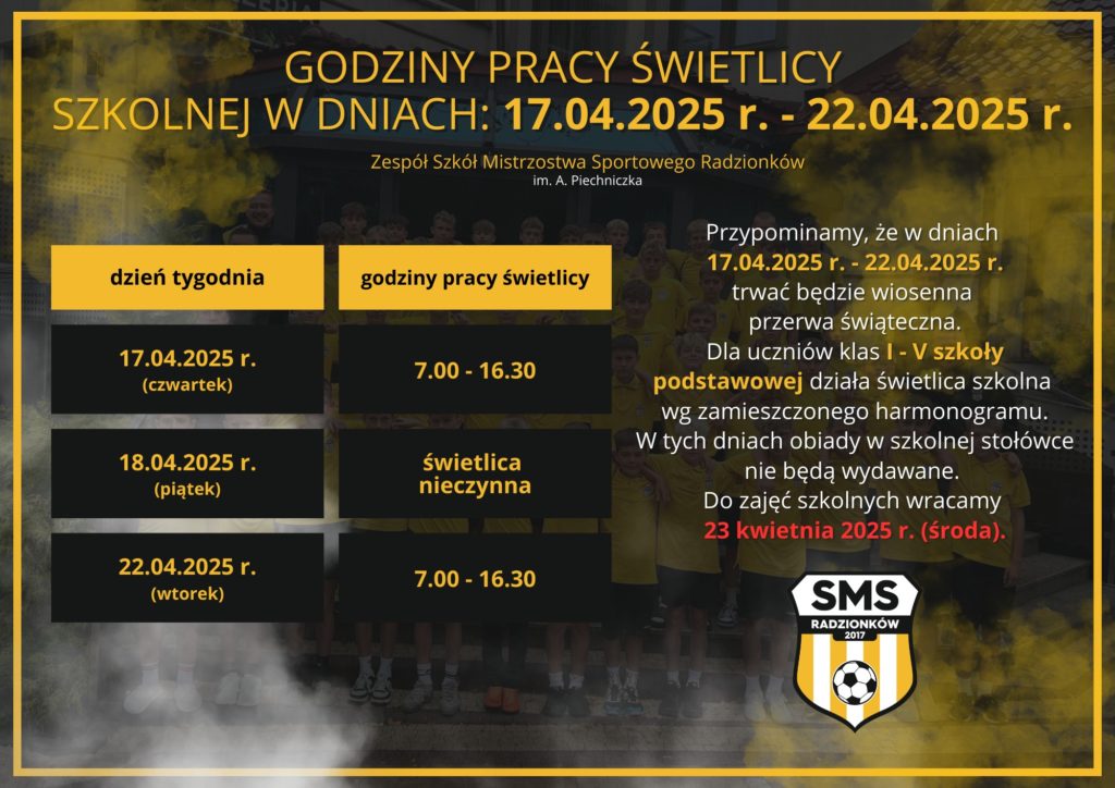 SMS DEV R > Blog > Informacje > ⚠️Przypominamy o godzinach funkcjonowania świetlicy szkolnej w czasie trwania „Wiosennej przerwy świątecznej”🌸⤵️