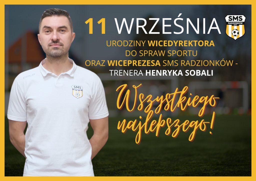 Trenerowi 𝗛𝗲𝗻𝗿𝘆𝗸𝗼𝘄𝗶 𝗦𝗼𝗯𝗮𝗹𝗶 w dniu jego święta życzymy samych sukcesów🥳, dużo zdrowia, spełnienia wszystkich marzeń🎉, doby trwającej 30 godzin😂, radości🤩, dalszego stoickiego spokoju oraz wielu pięknych chwil w SMS Radzionków!💛🖤