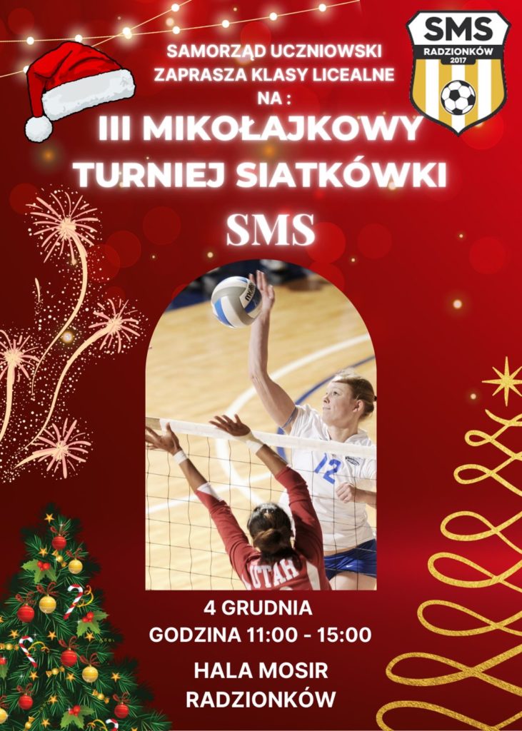 Zapraszamy wszystkich uczniów klas licealnych na Mikołajkowy Turniej Siatkówki! 🏐✨