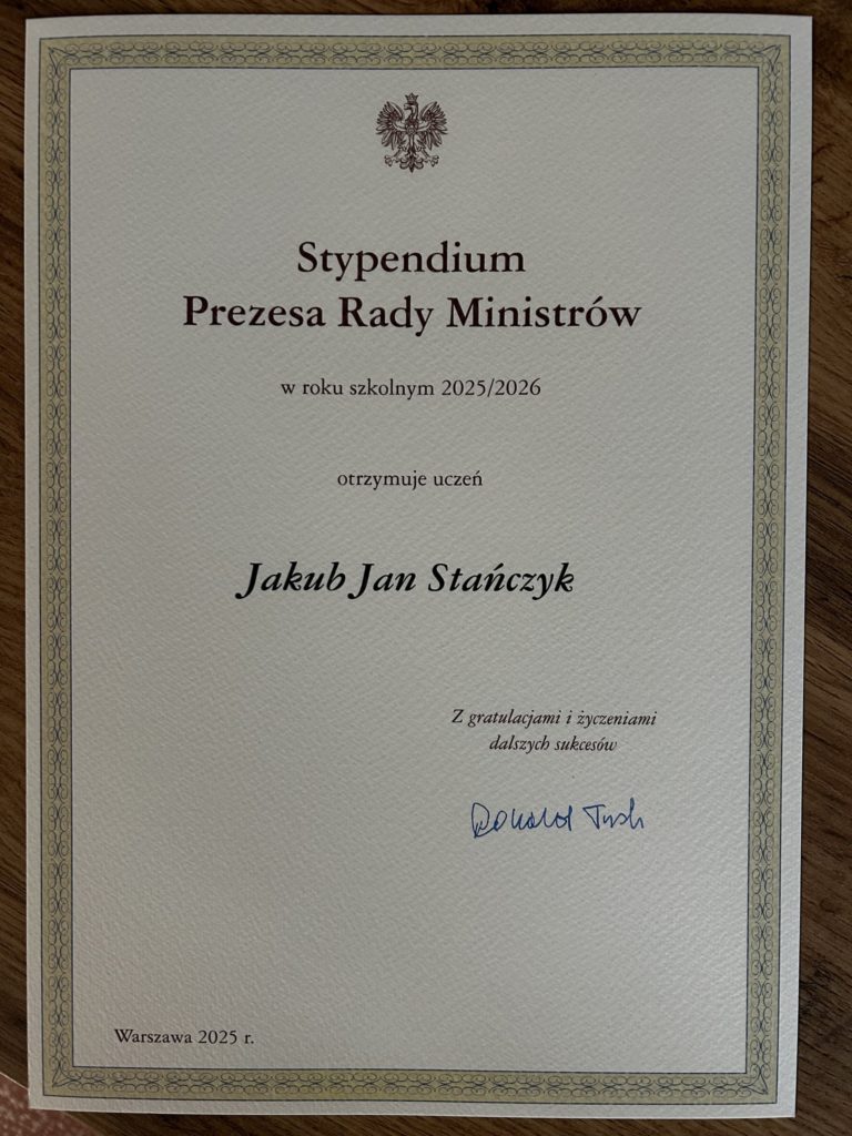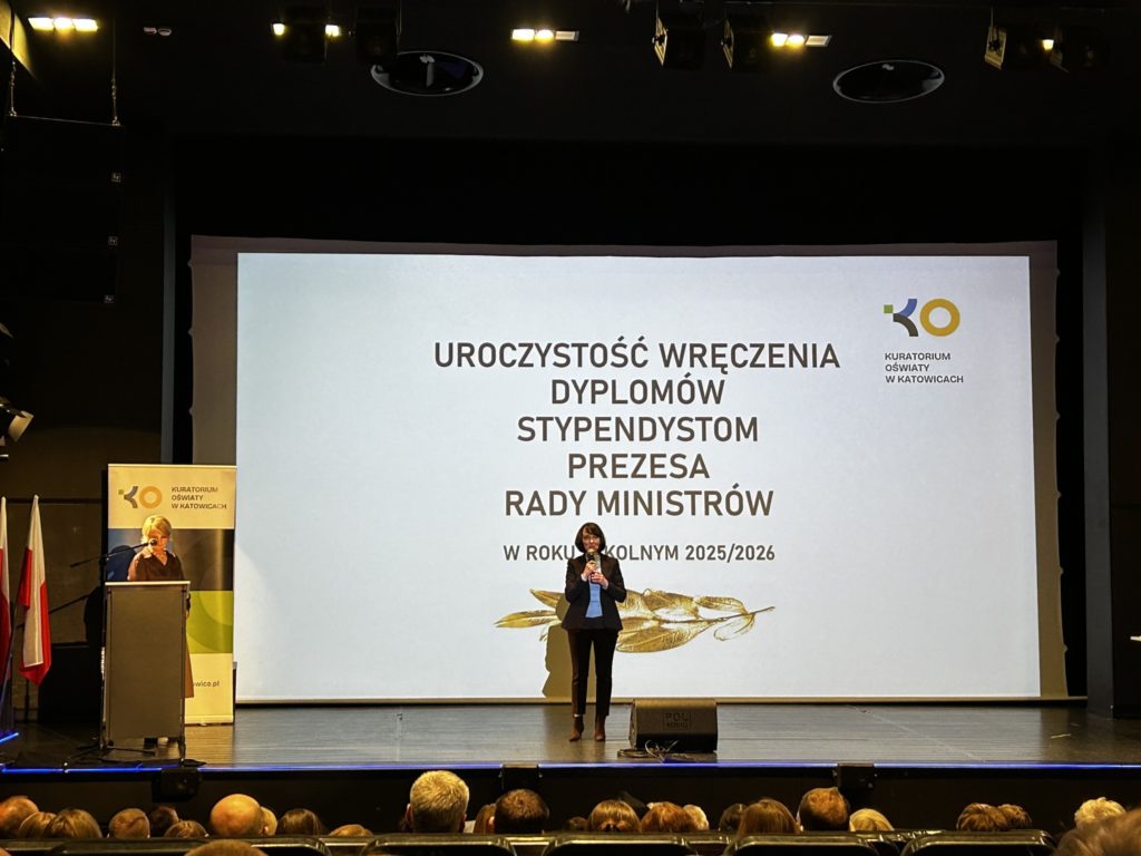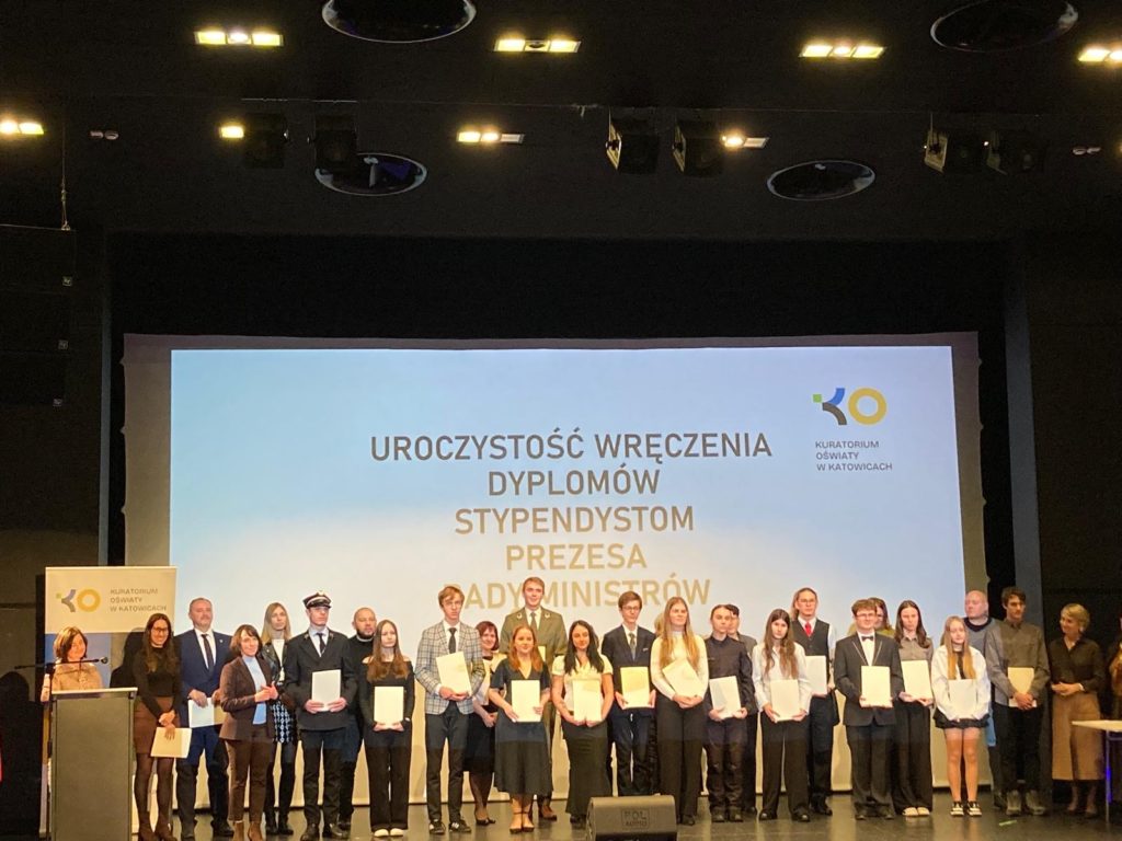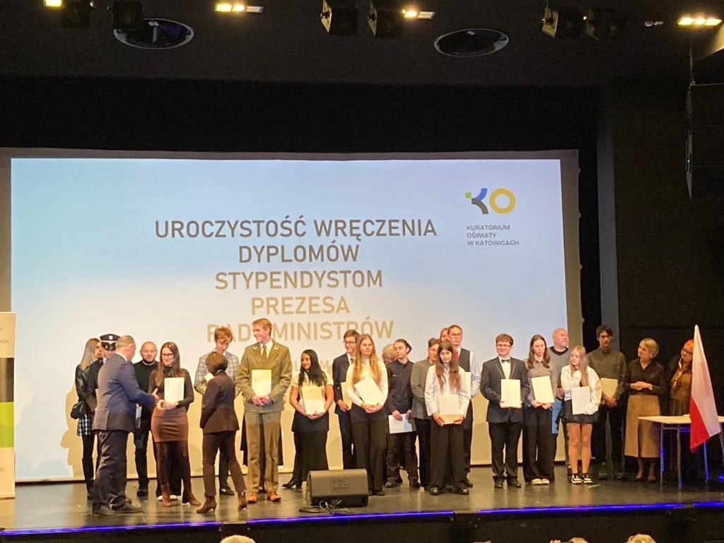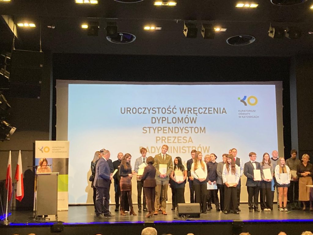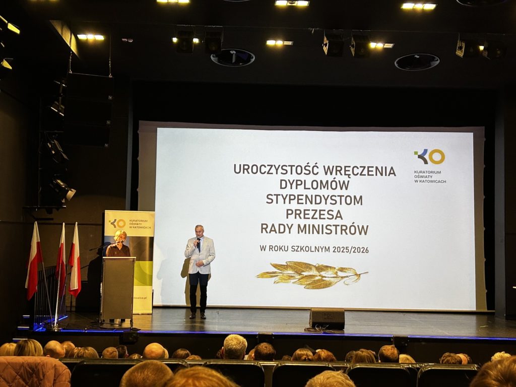 W ubiegłą środę, 26 listopada 2025 r., w Tarnogórskim Centrum Kultury 🎭 odbyło się uroczyste wręczenie Stypendiów Prezesa Rady Ministrów na rok szkolny 2025/2026 📚✨. Z dumą informujemy, że w naszej placówce wyróżnienie to otrzymał Jakub Stańczyk, uczeń klasy IVb LO 🎓👏.
