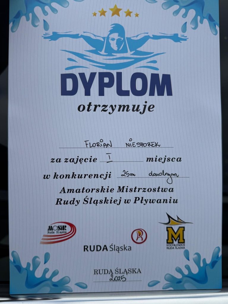 O tym, że uczniowie SMS Radzionków są wszechstronnie uzdolnieni, wiadomo nie od dziś! 💛💪 Wspinaczka, golf czy szachy – to tylko niektóre z dyscyplin, w których nasi podopieczni rozwijają swoje talenty. Dziś z ogromną radością dzielimy się kolejnym sportowym sukcesem! 🎉 Uczeń klasy Ia SP – Florian Niesporek – wziął udział w Amatorskich Mistrzostwach Rudy Śląskiej w Pływaniu, gdzie na dystansie 25 m stylem dowolnym zajął I miejsce w swojej kategorii wiekowej! 🥇