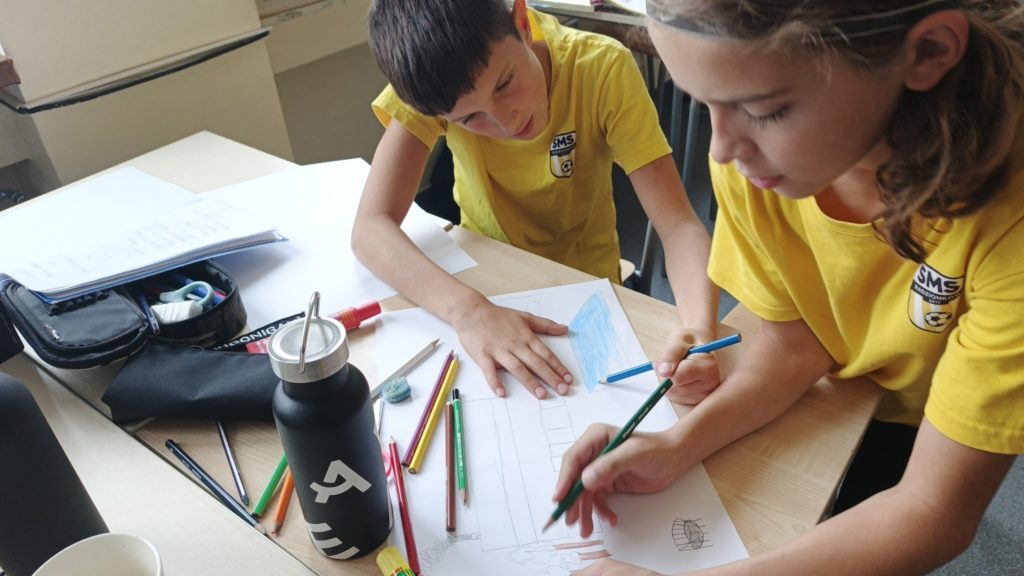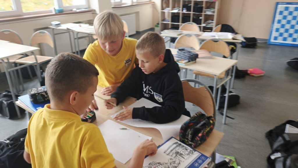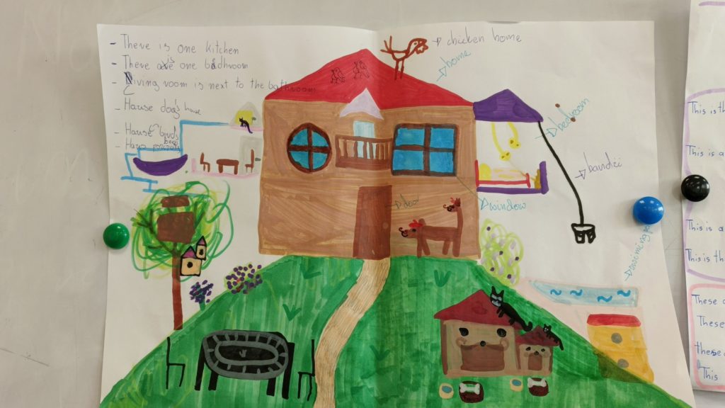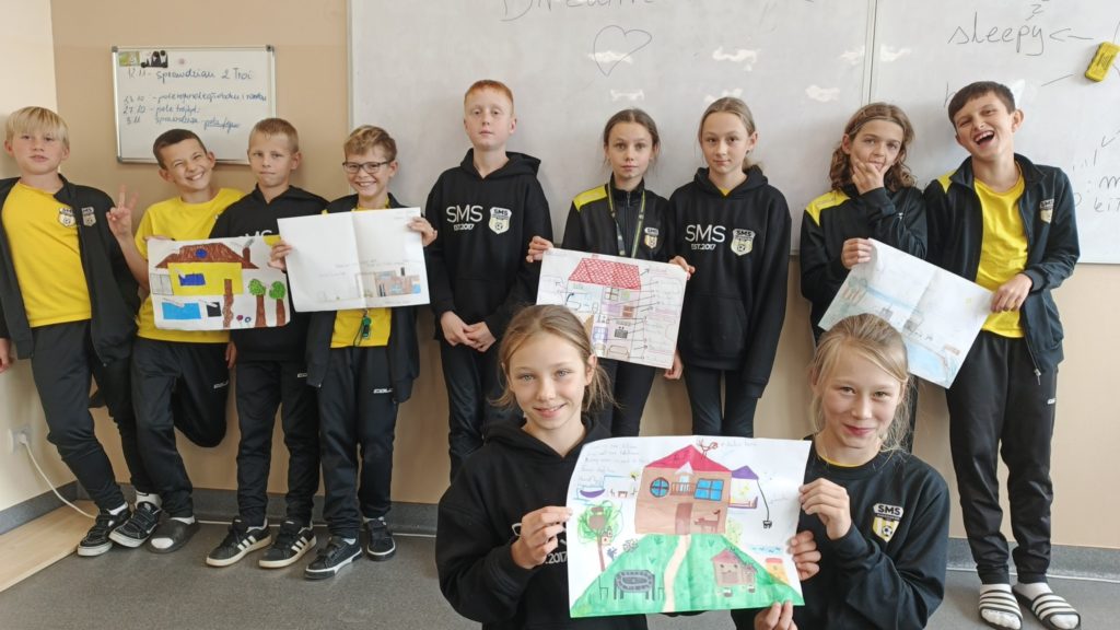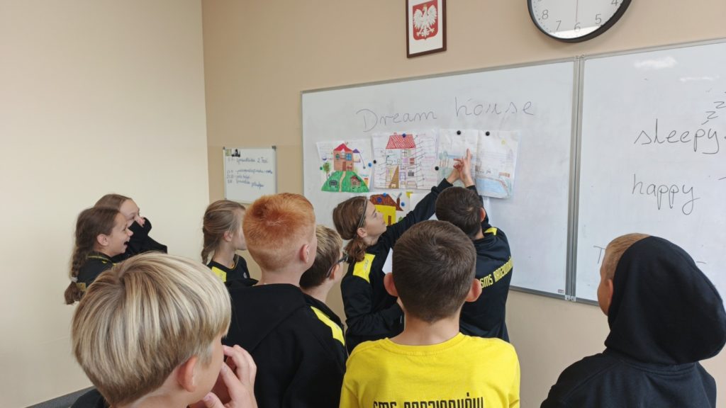 Podczas zajęć uczniowie projektowali i opisywali swój wymarzony dom, wykorzystując wcześniej poznane zagadnienia językowe, takie jak: