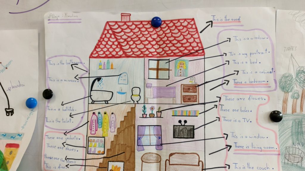 Przesyłamy i chwalimy się kilkoma zdjęciami z ostatnich lekcji j. angielskiego klasy V SP, podczas których uczniowie realizowali projekt „My Dream House”. 💬✏️