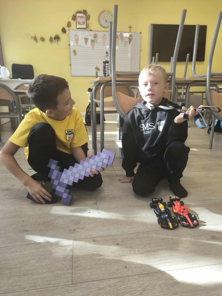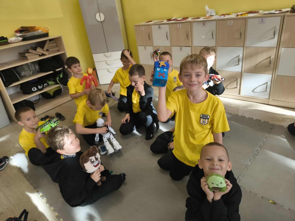🔹 W klasie 1b dzieci integrowały się poprzez wspólne rozmowy i zadanie specjalne – przeprowadzenie wywiadu🎤 z kolegą lub koleżanką na temat ulubionej zabawki 🧸, którą mogli przynieść do szkoły 🙂.
