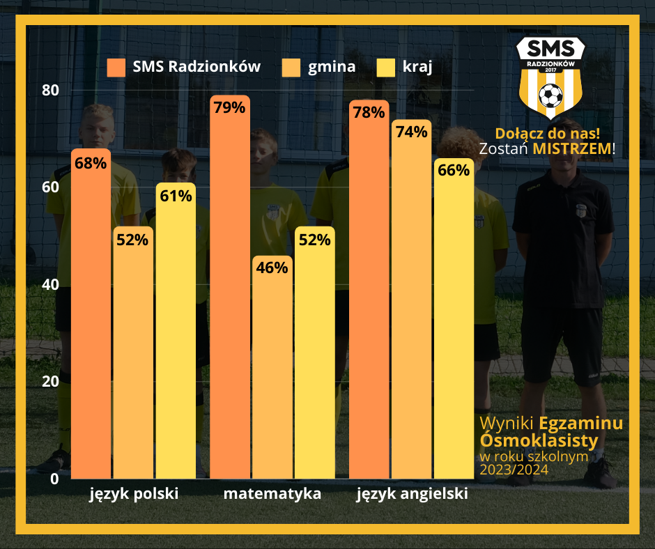 Z wielką dumą i radościami chwalimy się👏 wynikami 📊Egzaminu Ósmoklasisty, które dotarły do nas we wczorajszym dniu. Nasi uczniowie osiągnęli świetne rezultaty📈 i po raz kolejny pokazali, że SMS Radzionków💛🖤 to idealne połączenie sportu i nauki! Wszystkie wyniki naszych uczniów są powyżej średniej gminy, powiatu, województwa i kraju. Serdecznie gratulujemy naszym absolwentom i życzymy powodzenia w szkole ponadpodstawowej.