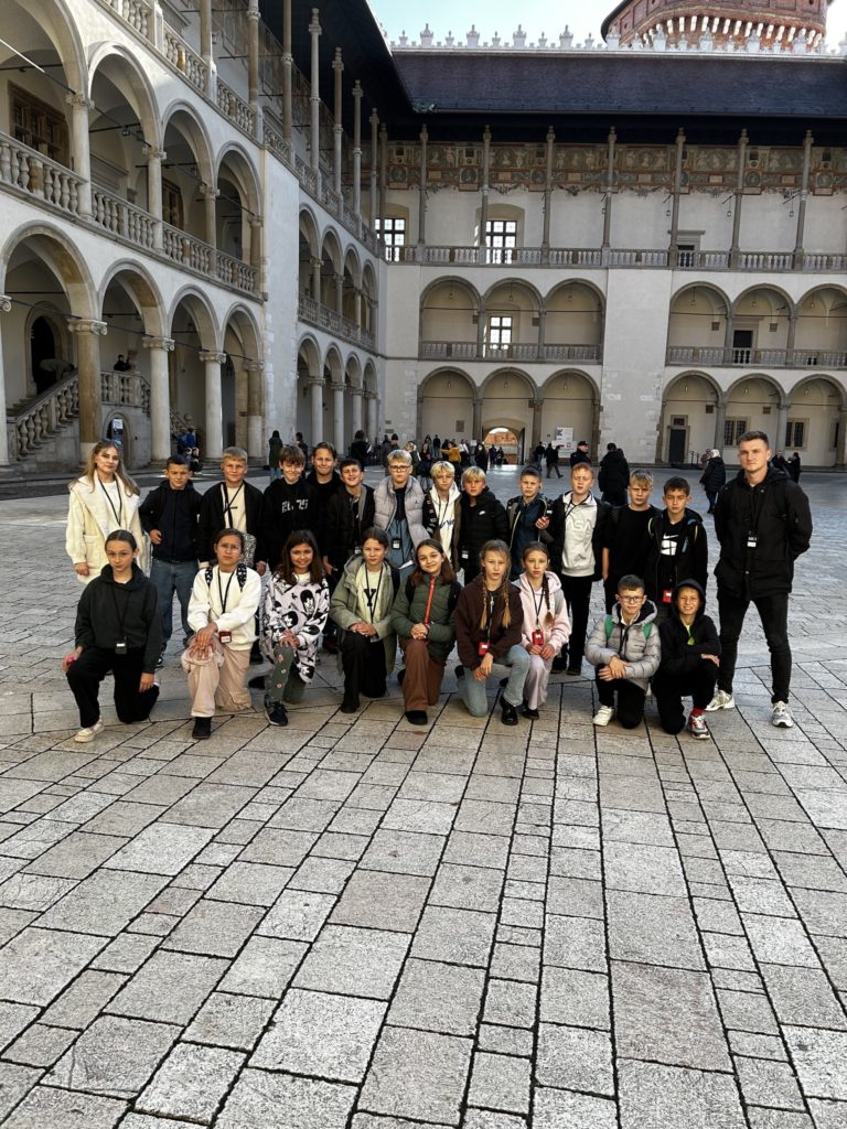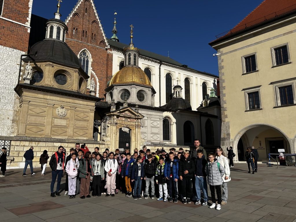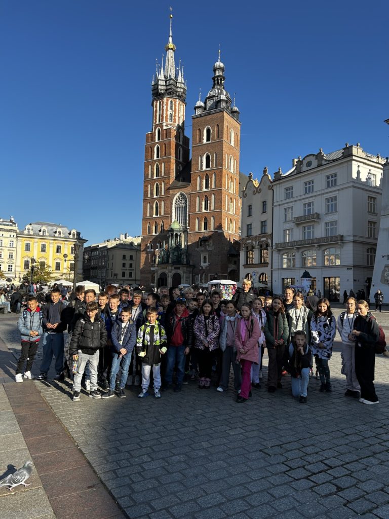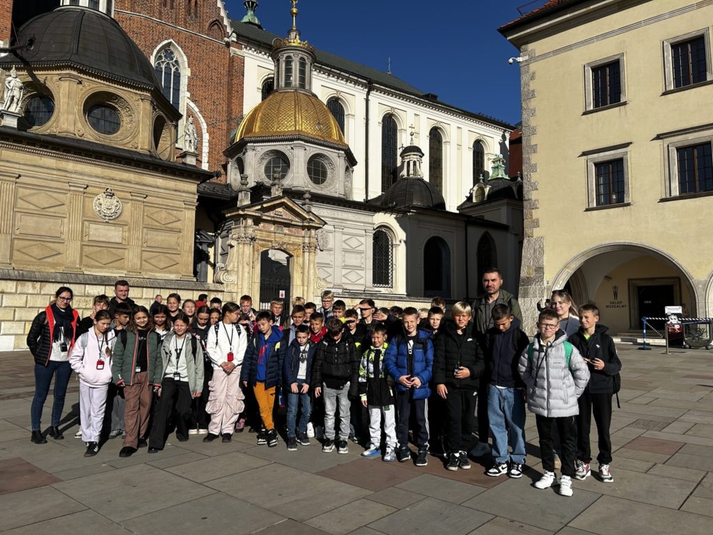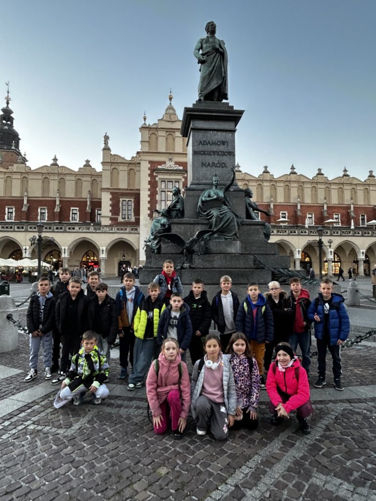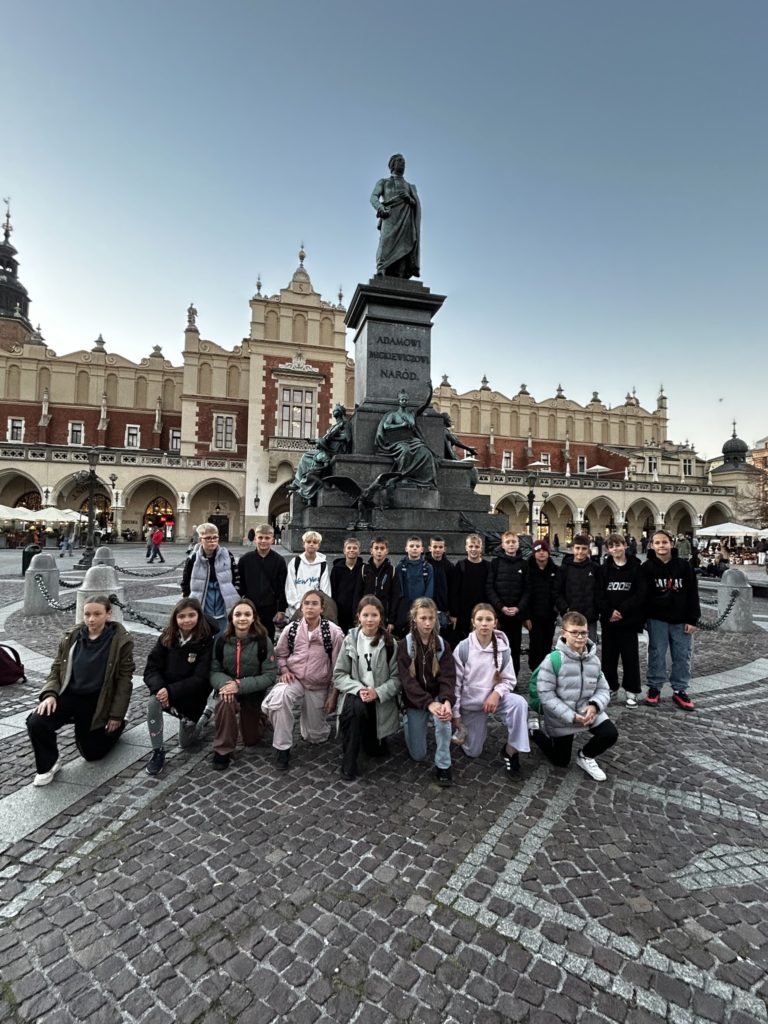 7 listopada 2025 r. uczniowie klas IV i V naszej szkoły wybrali się na niezwykłą wycieczkę do dawnej, historycznej stolicy Polski – Krakowa! 🏰✨ Na miejscu czekała na nich pani przewodnik, która rozpoczęła oprowadzanie od legend i opowieści o grodzie Kraka 🐉📖. Uczniowie zobaczyli słynny pomnik smoka wawelskiego, odwiedzili Wawel i zwiedzili jego skarby – w tym Katedrę Wawelską oraz Dzwon Zygmunta, spełniający wszystkie życzenia 🔔💫. Następnie spacerowali krakowskimi uliczkami 🏙️, podziwiali Rynek Główny, Sukiennice i odwiedzili Muzeum Archeologiczne 🏛️. Tam wzięli udział w niezwykłej lekcji historii – mogli przenieść się do dawnych czasów i spróbować swoich sił w ozdabianiu średniowiecznych liter 🖋️📜. Po zajęciach uczniowie zwiedzili wystawy o dawnych ludach zamieszkujących okolice Krakowa, a potem wrócili na Rynek, gdzie wysłuchali hejnału z Wieży Mariackiej 🎺, spotkali znanego youtubera 😉 i zrobili pamiątkowe zdjęcia przy pomniku Adama Mickiewicza 📸. Na zakończenie – pyszny obiad 🍽️ i powrót do Radzionkowa z głowami pełnymi wspomnień! 💖