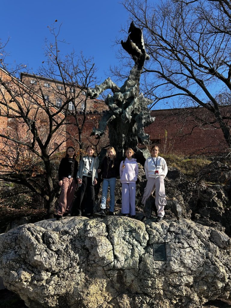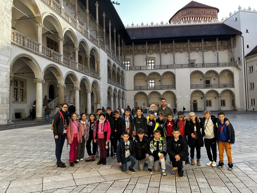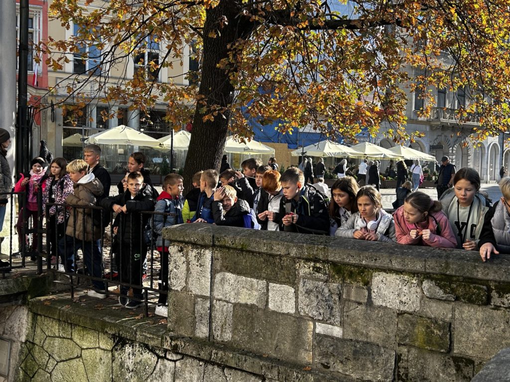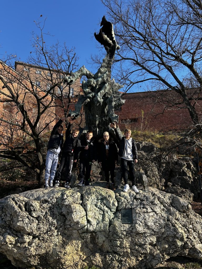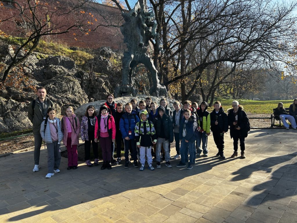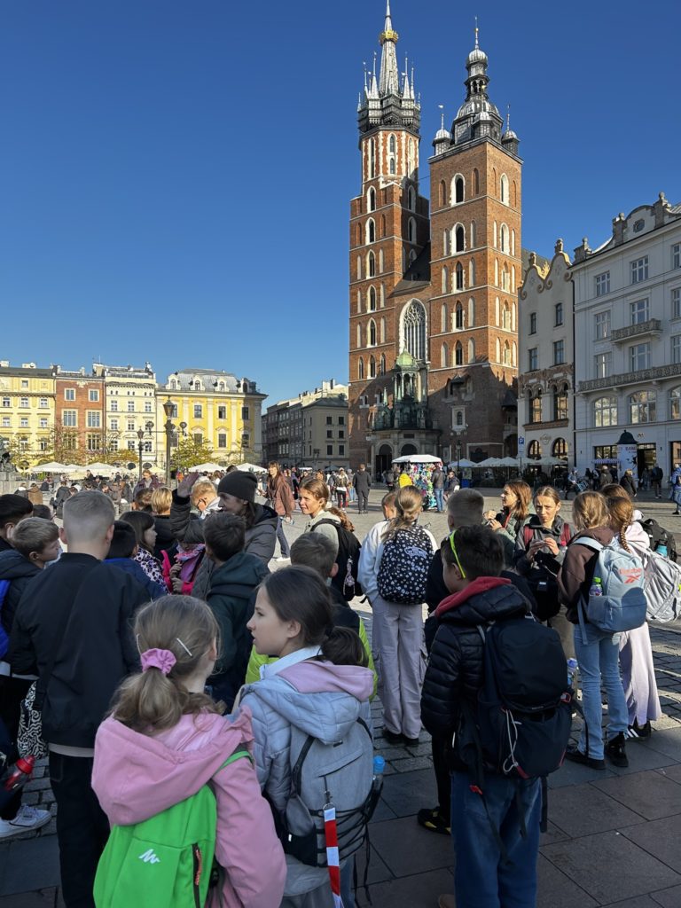 7 listopada 2025 r. uczniowie klas IV i V naszej szkoły wybrali się na niezwykłą wycieczkę do dawnej, historycznej stolicy Polski – Krakowa! 🏰✨ Na miejscu czekała na nich pani przewodnik, która rozpoczęła oprowadzanie od legend i opowieści o grodzie Kraka 🐉📖. Uczniowie zobaczyli słynny pomnik smoka wawelskiego, odwiedzili Wawel i zwiedzili jego skarby – w tym Katedrę Wawelską oraz Dzwon Zygmunta, spełniający wszystkie życzenia 🔔💫. Następnie spacerowali krakowskimi uliczkami 🏙️, podziwiali Rynek Główny, Sukiennice i odwiedzili Muzeum Archeologiczne 🏛️. Tam wzięli udział w niezwykłej lekcji historii – mogli przenieść się do dawnych czasów i spróbować swoich sił w ozdabianiu średniowiecznych liter 🖋️📜. Po zajęciach uczniowie zwiedzili wystawy o dawnych ludach zamieszkujących okolice Krakowa, a potem wrócili na Rynek, gdzie wysłuchali hejnału z Wieży Mariackiej 🎺, spotkali znanego youtubera 😉 i zrobili pamiątkowe zdjęcia przy pomniku Adama Mickiewicza 📸. Na zakończenie – pyszny obiad 🍽️ i powrót do Radzionkowa z głowami pełnymi wspomnień! 💖