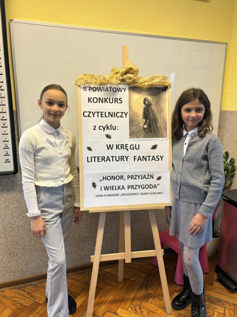 W środę, 28 października 2025 r., nasze uczennice z klasy V — Magdalena Sobala i Weronika Olszańska — reprezentowały SMS w „II Powiatowym Konkursie Czytelniczym z cyklu: W kręgu literatury fantasy” 🏰. Konkurs zorganizowany został przez bibliotekę Szkoły Podstawowej nr 2 w Radzionkowie 📖 i dotyczył znajomości książki J. Flanagana „Zwiadowcy. Ruiny Gorlanu” ⚔️📜. Choć tym razem dziewczynom nie udało się stanąć na podium 🏅, serdecznie gratulujemy im zaangażowania, odwagi i miłości do książek! 💪