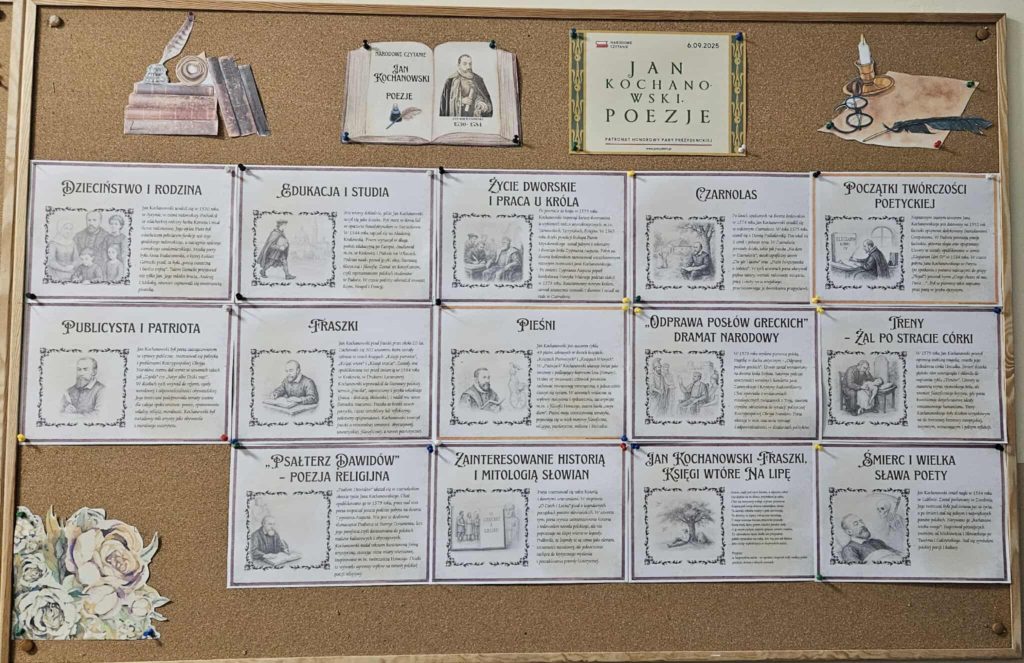 Z tej okazji powstała również gazetka szkolna 📰, w której znalazły się informacje o poecie i jego najważniejszych dziełach. ✒️📜