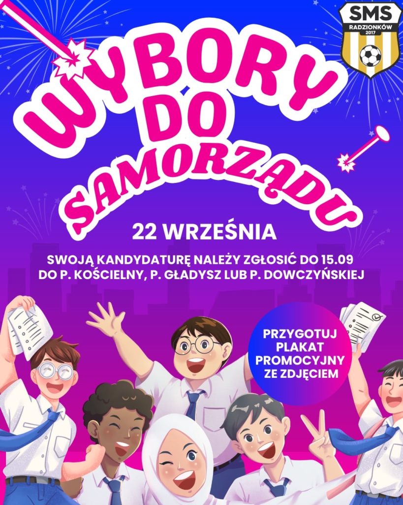 Drodzy Uczniowie! Zbliżają się wybory do Samorządu Uczniowskiego, które odbędą się 📅 22 września 2025 roku (poniedziałek).
