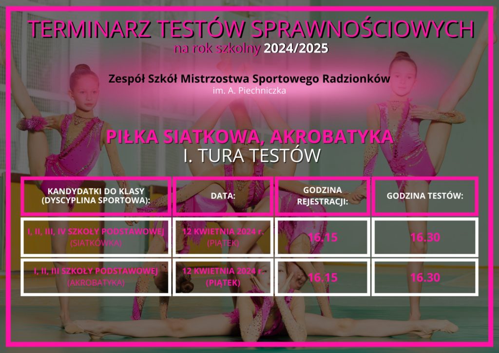 ➡️ do czwartku 11 kwietnia 2024 r. – kandydatki do klas: I, II, III, IV – profil sportowy: piłka siatkowa 🏐 i akrobatyka 🤸♀️,