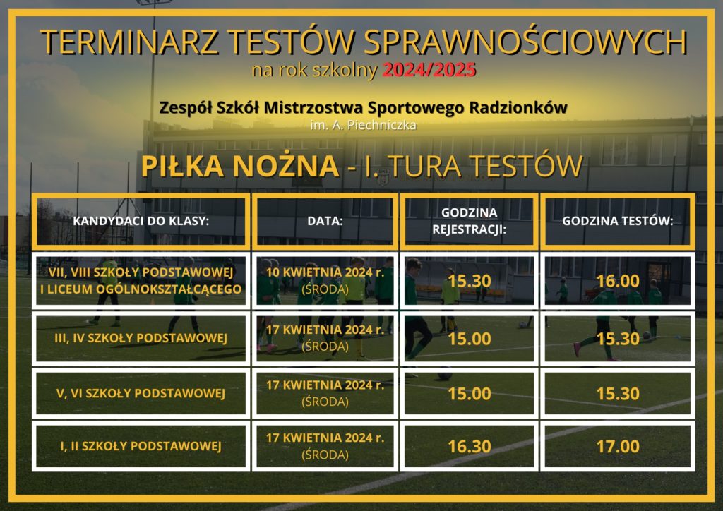 ➡️ do wtorku 16 kwietnia 2024 r. – kandydaci do klas: I, II, III, IV, V i VI – profil sportowy: piłka nożna chłopców ⚽️.