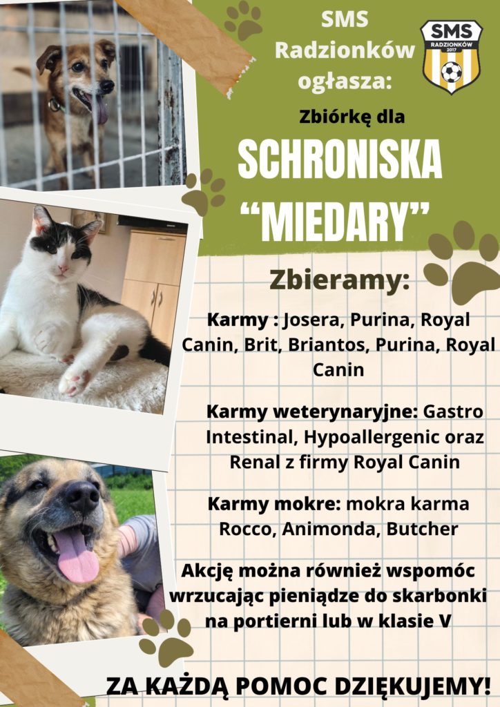 Zachęcamy wszystkich do włączenia się w akcję pomocy zwierzakom ze schroniska Schronisko Miedary 🐕🐕🦺. Zbiórka karmy dla psiaków rusza w naszej szkole już od piątku 29 września 2023 r. i potrwa dwa tygodnie.