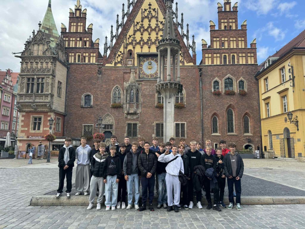 29–30 września 2025 r. uczniowie klasy VIII wyruszyli na dwudniową wycieczkę do Wrocławia! 🏙️ Podróż pociągiem już od samego początku wprowadziła wszystkich w doskonały nastrój. 😄 Pierwszego dnia chłopcy wzięli udział w emocjonującej grze miejskiej 🕵️♂️, podczas której poznawali najciekawsze zakątki Wrocławia w niecodzienny i bardzo aktywny sposób. Następnie udali się na Tarczyński Arena Wrocław ⚽, gdzie wraz z przewodnikiem zwiedzili stadion i poznali jego kulisy. Wieczorem przyszedł czas na wspólne rozmowy, pyszną pizzę 🍕 i integrację w świetnej atmosferze! 💬🎉 Drugiego dnia uczestnicy spacerowali po malowniczych uliczkach miasta 🌆, odwiedzając m.in. Ostrów Tumski — najstarszą część Wrocławia, słynącą z pięknej architektury i niezwykłego klimatu. 🏛️📸