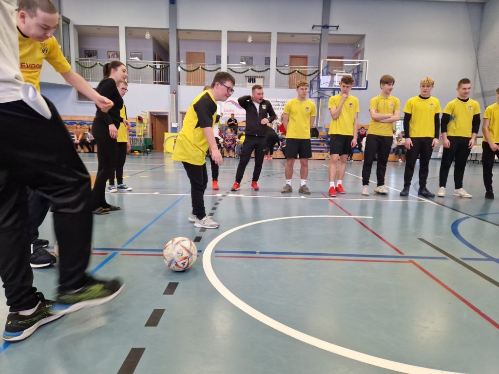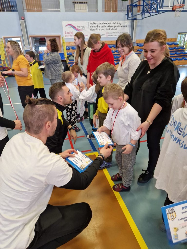 1️⃣8️⃣ stycznia 2024 r. nasza szkoła po raz drugi w historii była organizatorem „Integracyjnego Dnia Sportu – Wszyscy jesteśmy równi”. Nasze zaproszenie przyjął Zespół Dziennych Ośrodków Rewalidacyjno-Edukacyjno-Wychowawczych i Rehabilitacyjnych z Radzionkowa. Podczas dnia pełnego zrozumienia i akceptacji nasi goście mogli liczyć na olbrzymią dawkę sportowej energii🎉, którą otrzymali od naszych uczniów. Nie zabrakło toru przeszkód🧑🦽, rzutów do celu🎯🎳 oraz oczywiście konkurencji piłkarskiej⚽️! Dzieci, bez względu na swoje umiejętności pracowały wspólnie i każde z nich osiągnęło sukces🤩. Wszyscy zostali wynagrodzeni medalami🏅 oraz dyplomami, a do ośrodka trafił imponujący puchar🏆! Był to wspaniały dzień łączący sportową pasję z akceptacją dla drugiego człowieka. Dziękujemy ZDOREWiR Radzionków za wspólnie spędzony czas.