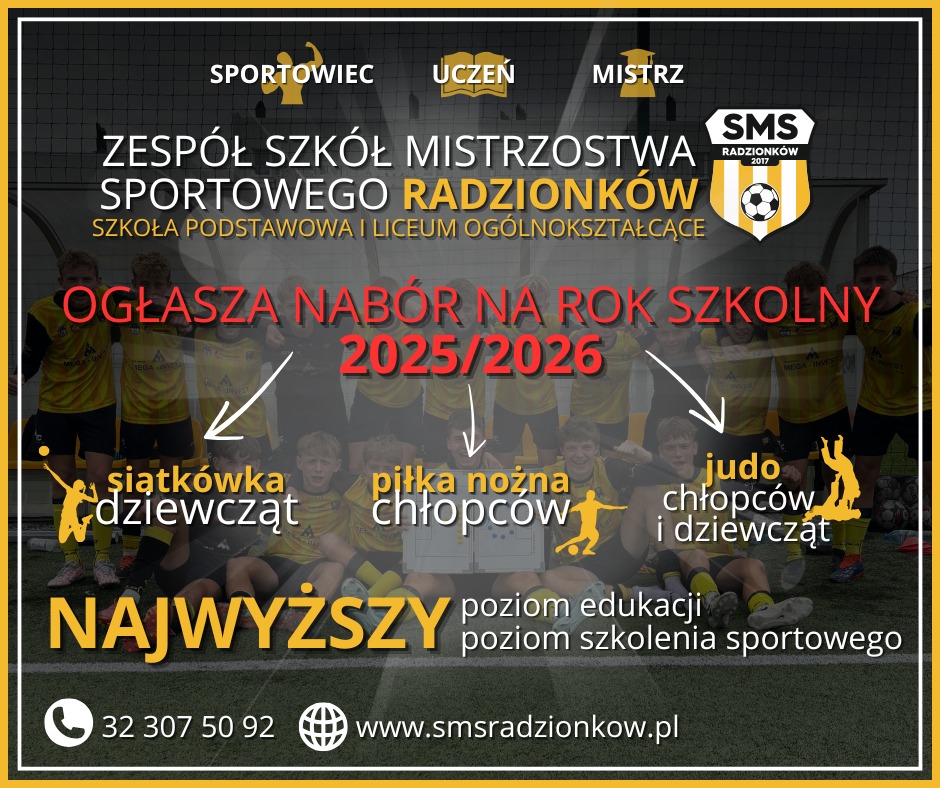 Rodziców wszystkich chętnych kandydatek oraz wszystkich chętnych kandydatów do wstąpienia w szeregi żółto🟡-czarnej⚫️ SMS-owej rodziny zachęcamy do pobierania dokumentów 📃rekrutacyjnych z sekretariatu szkoły📞 lub ze strony internetowej🌐: https://smsradzionkow.msgdev.pl/rekrutacja/. Dokumenty można składać osobiście🚶‍♀️🚶 lub drogą elektroniczną📧 do 1️⃣ kwietnia 2025 r.