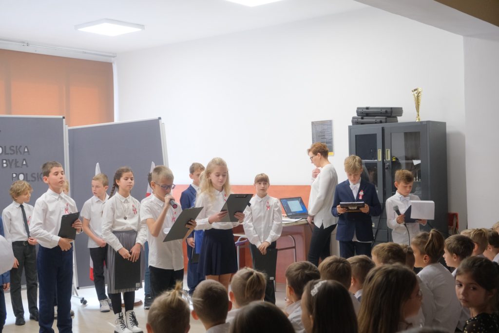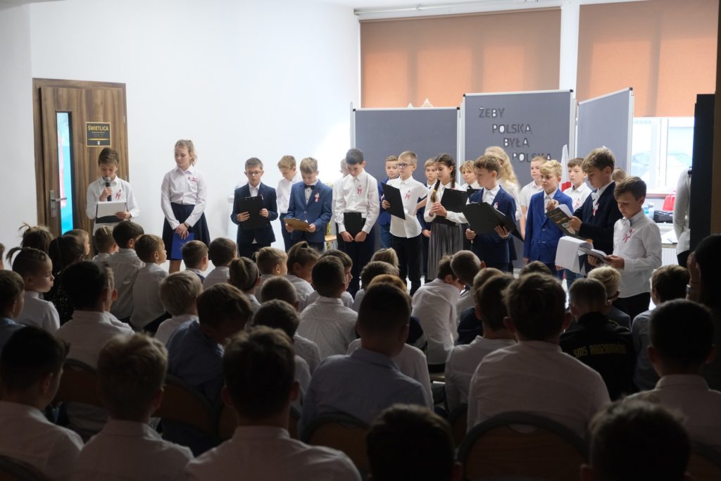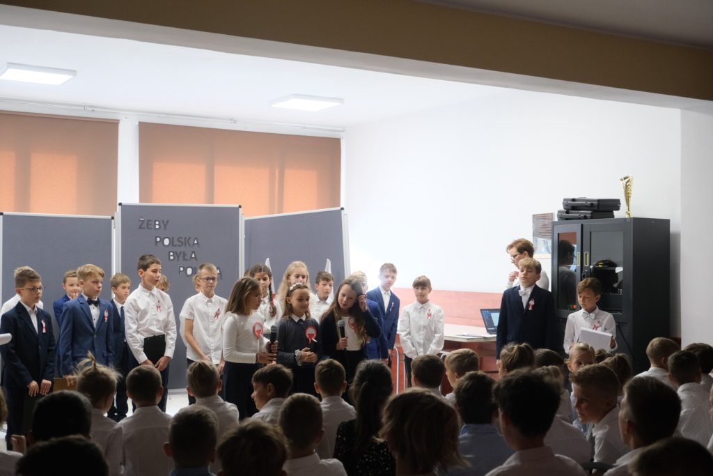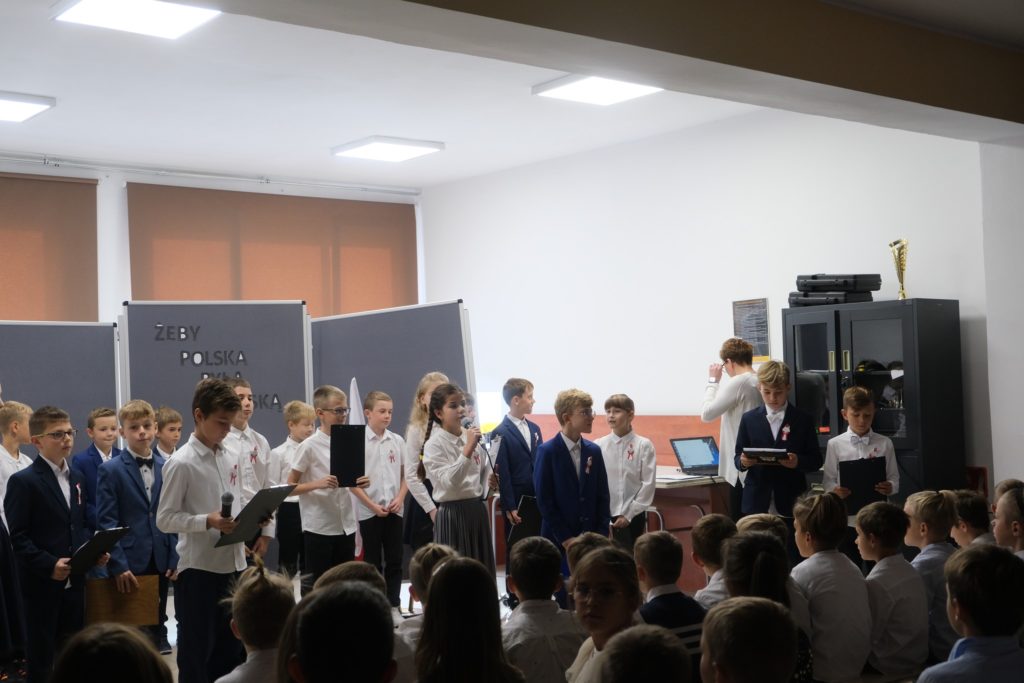 1️⃣0️⃣ listopada uczniowie szkoły podstawowej brali udział w akademii upamiętniającej Narodowe Święto Niepodległości. Uczniowie klasy 4️⃣ przenieśli nas w dawne czasy i przypomnieli jak Polska dążyła do odzyskania wolności. Piękne wiersze, wzruszające piosenki oraz oczywiście wspólne odśpiewanie „Mazurka Dąbrowskiego” sprawiły, że w każdym z naszych uczniów wzbudziły się patriotyczne uczucia.