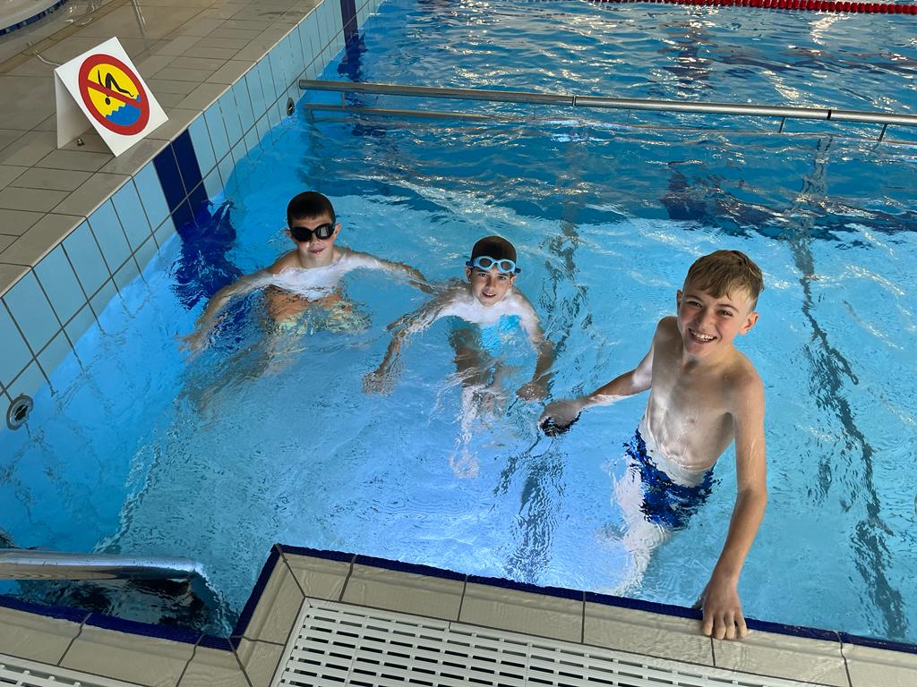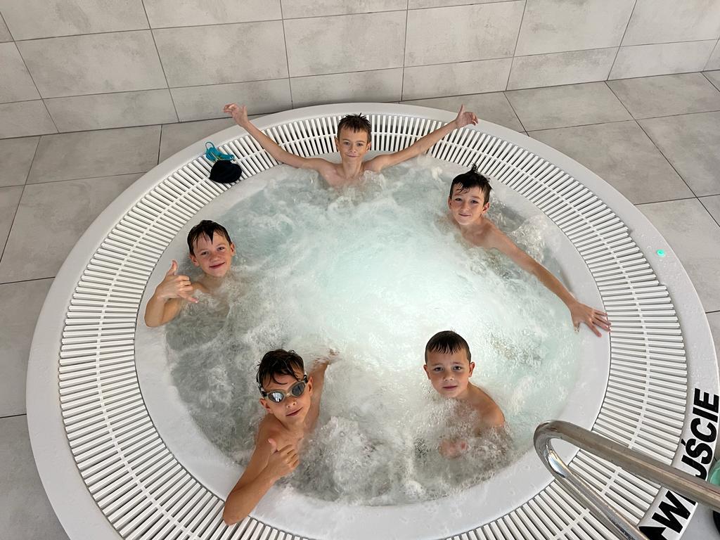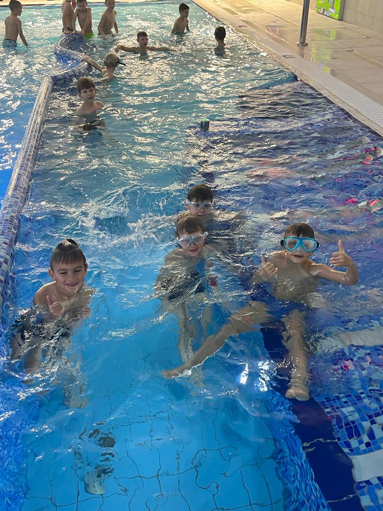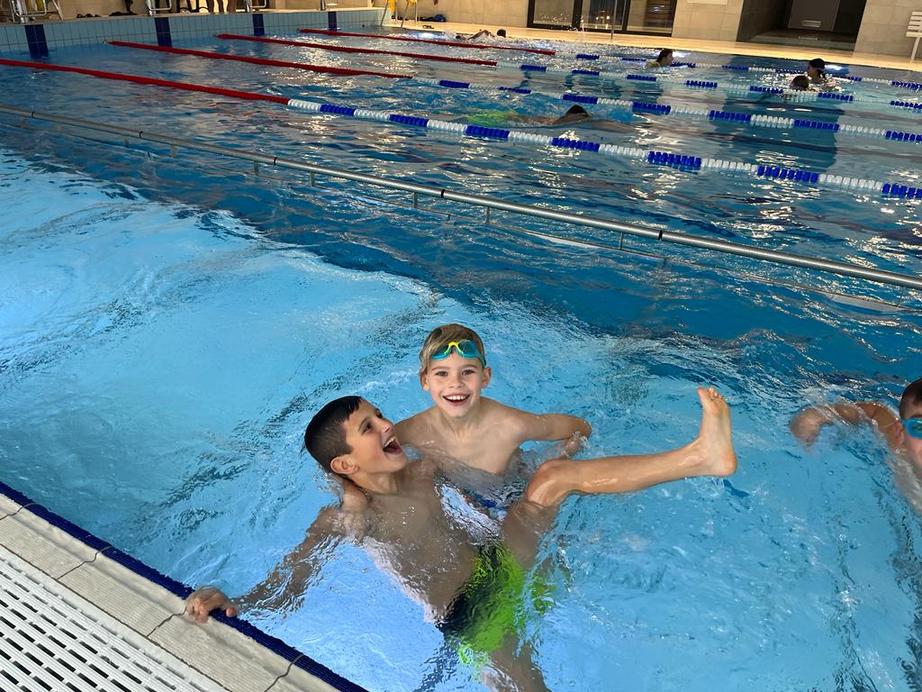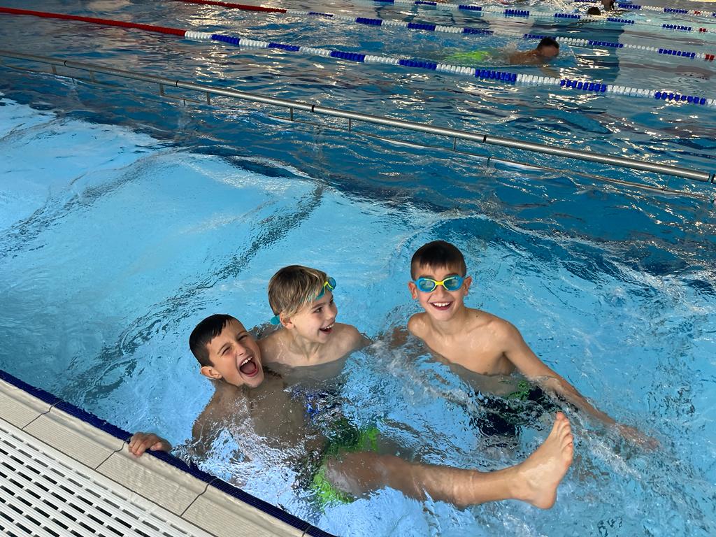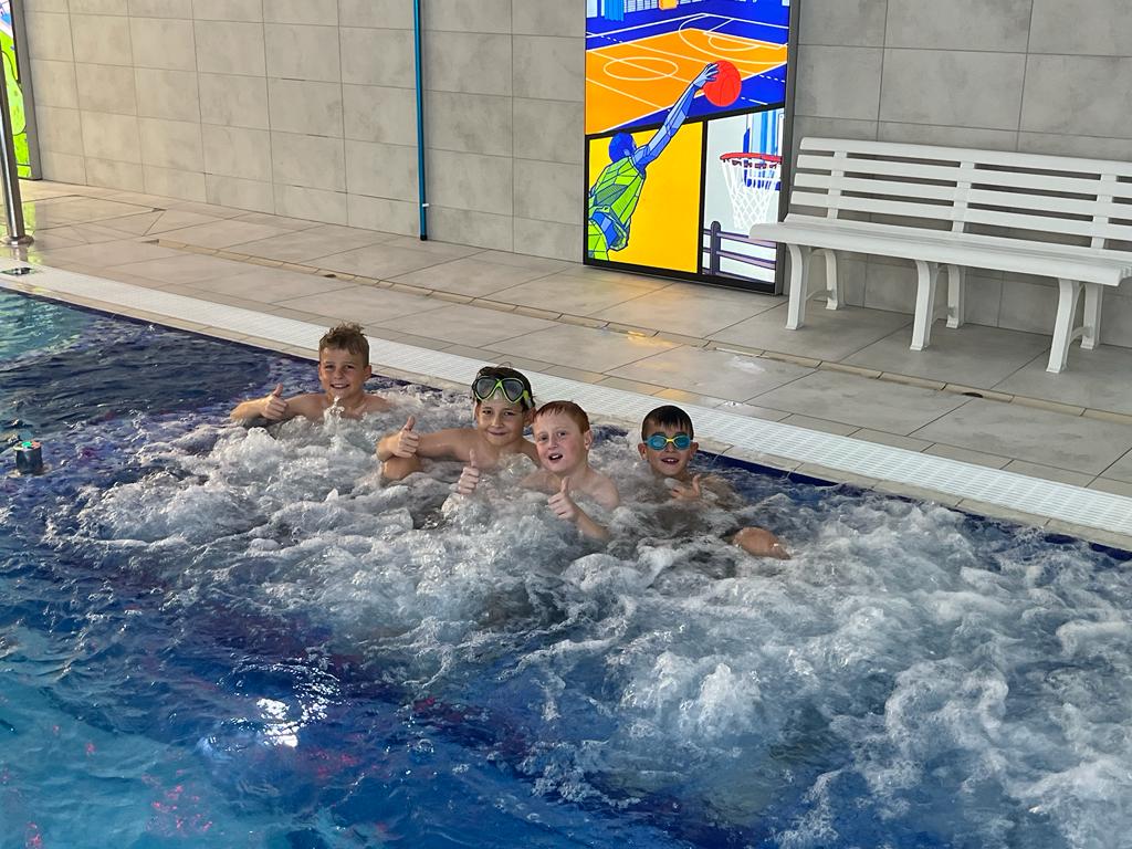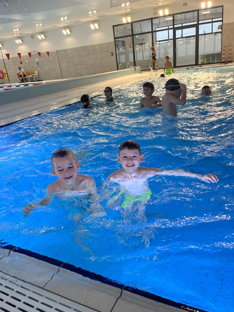 W ubiegłym tygodniu w ramach lekcji wychowania fizycznego oraz zajęć sportowych nasi uczniowie wybrali się do radzionkowskiej pływalni 🏊. Czy było fajnie?😉 – wystarczy spojrzeć na zdjęcia i zadowolone miny naszych siatkarek i piłkarzy 💛 – BYŁO FAJNIE I MOKRO 🌊🙃