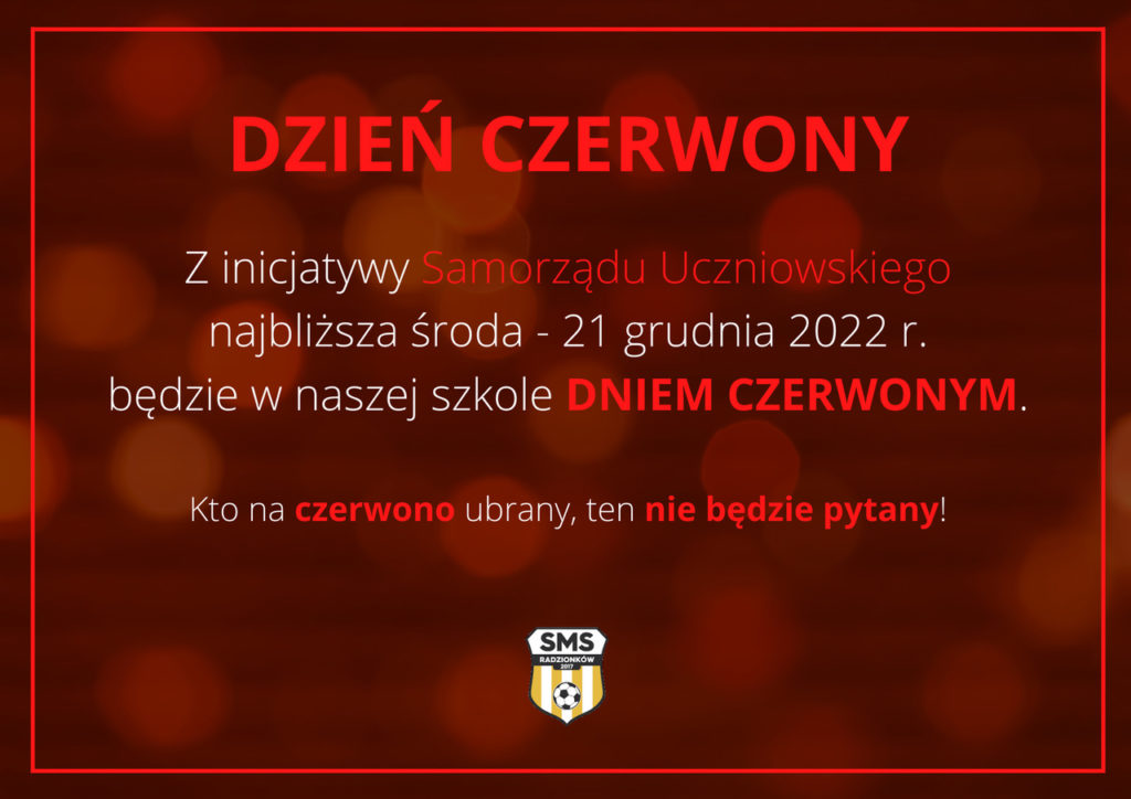 Nadchodząca środa – 21 grudnia 2022 r. będzie w naszej szkole dniem czerwonym.