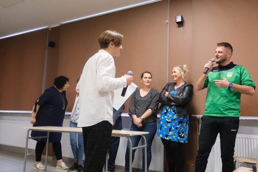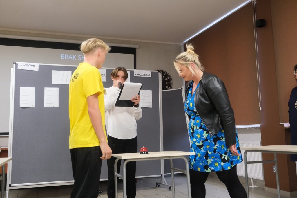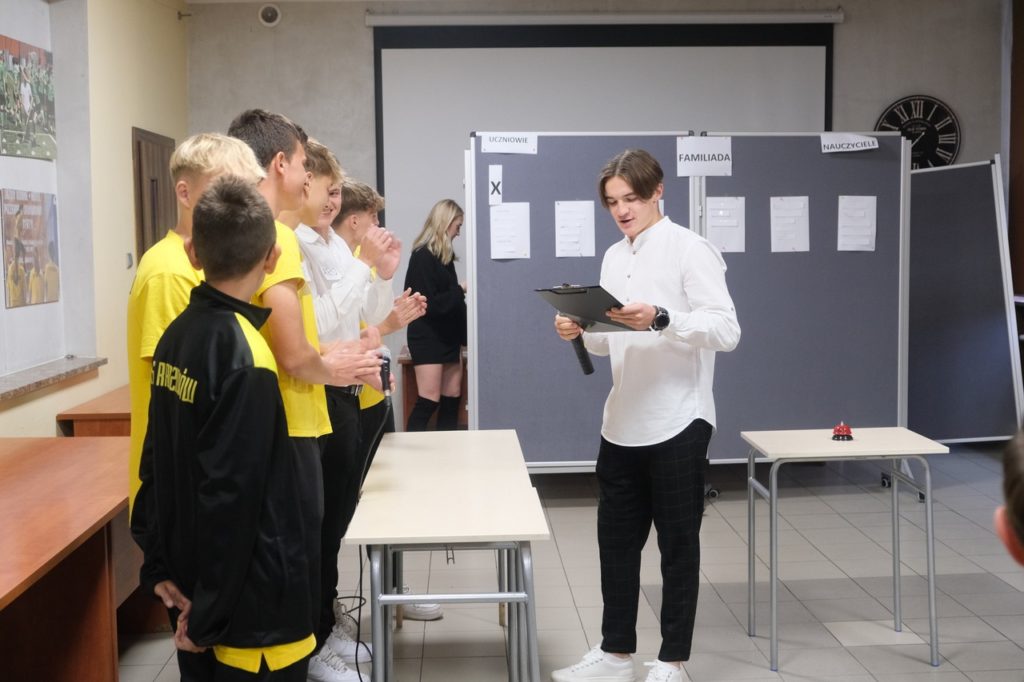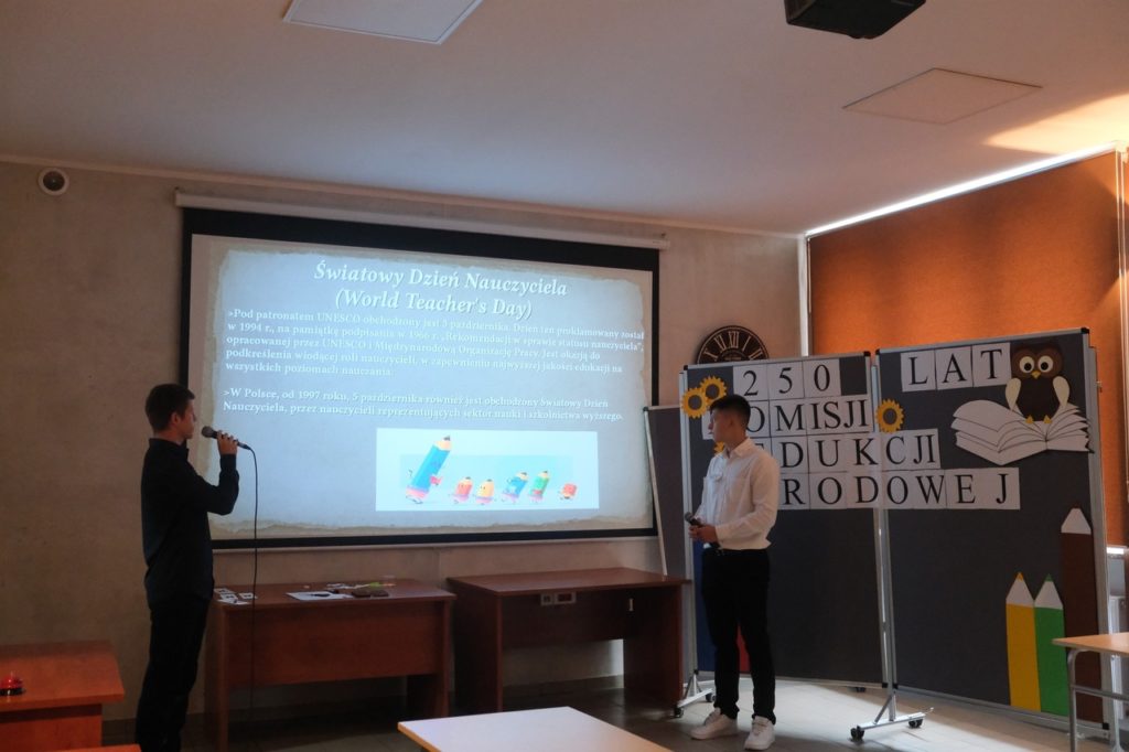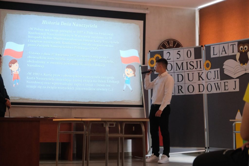 1️⃣6️⃣ października 2023 r. odbyła się akademia z okazji „Dnia Edukacji Narodowej”👩‍🏫. Podzielona była na dwie części: w pierwszej z nich przedstawiono ogólne informacje dotyczące „Komisji Edukacji Narodowej”🏫, w drugiej odbyła się „Familiada: uczniowie vs. nauczyciele”. Jak zwykle w tym dniu uśmiechu i dobrej zabawy było całe mnóstwo, a nasi licealiści spisali się znakomicie tocząc pojedynki ze swoimi belframi 👏🙂🙃. Serdecznie podziękowania dla p. M. Mołdawy oraz Samorządu Uczniowskiego za zorganizowanie dzisiejszej akademii 💛🖤