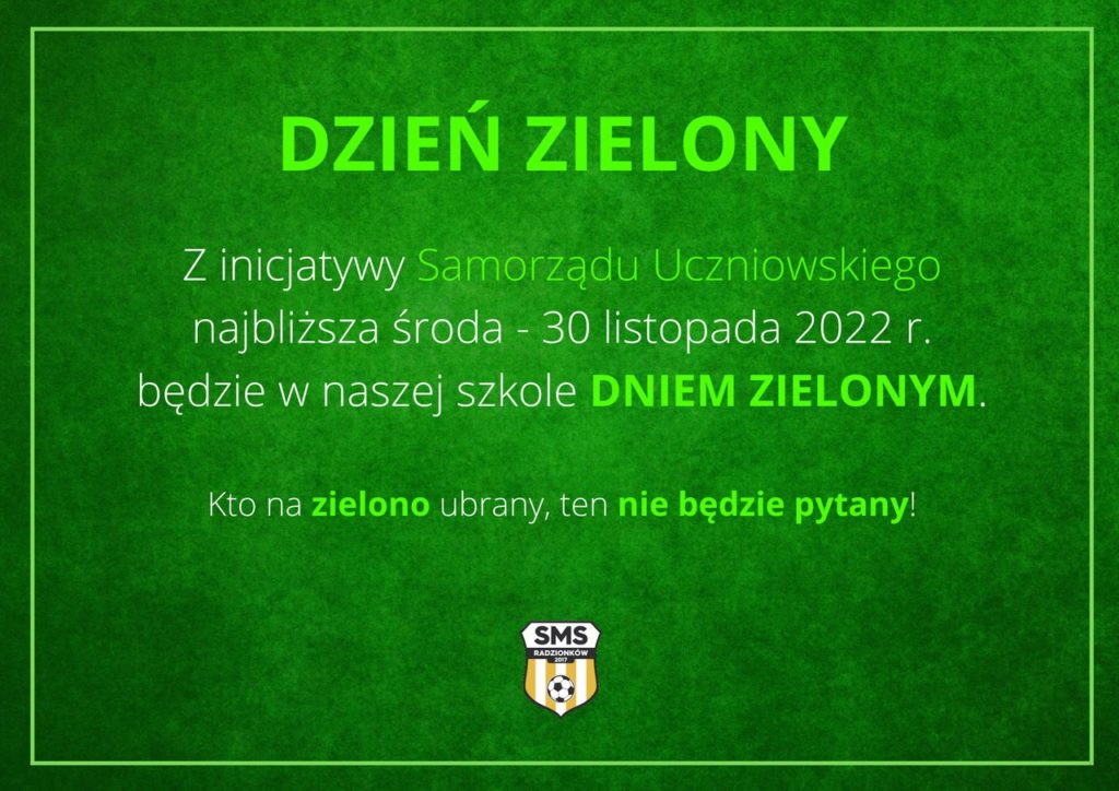 Z inicjatywy Samorządu Uczniowskiego ostatni dzień miesiąca LISTOPADA (środę) ogłaszamy „Dniem zielonym”!