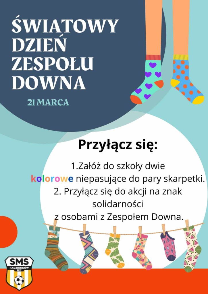 SMS DEV R > Blog > Szkolne wydarzenia > Już jutro – „Światowy Dzień Zespołu Downa”. Zachęcamy do przyłączenia się do akcji na znak solidarności🧦 z osobami z Zespołem Downa 🔽
