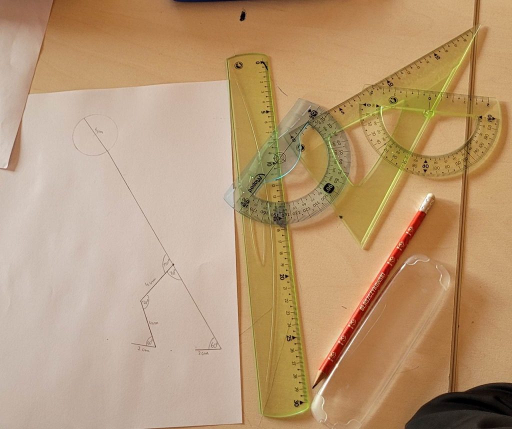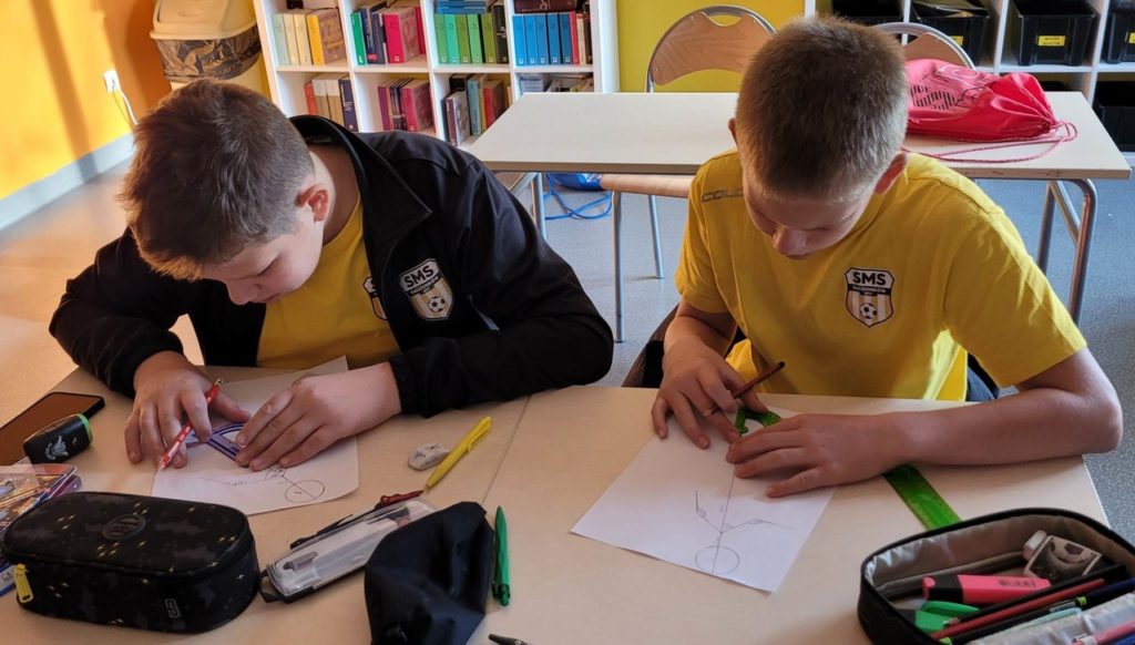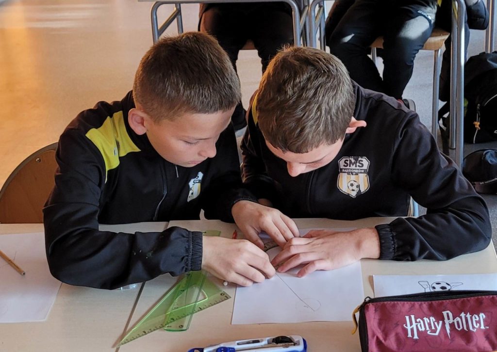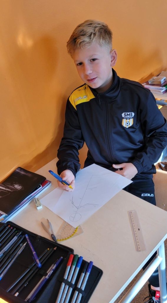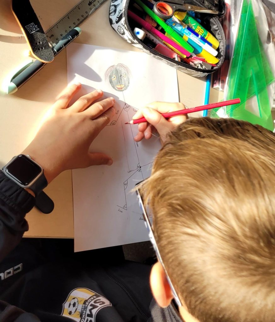 Na podsumowującej lekcji o ķątach uczniowie klasy VI szlifowali umiejętność posługiwania się przyrządami geometrycznymi 📐📏. Chłopcy mieli za zadanie narysować „Patyczaka” zgodnie z instrukcją📝, którą otrzymali. Po wykonaniu zadania powstałą postać mogli przekształcić w dowolnego ludzika 🙂. Zadanie do najłatwiejszych nie należało, ale nasi uczniowie poradzili sobie z nim doskonale, zresztą zobaczcie sami💁♂️!