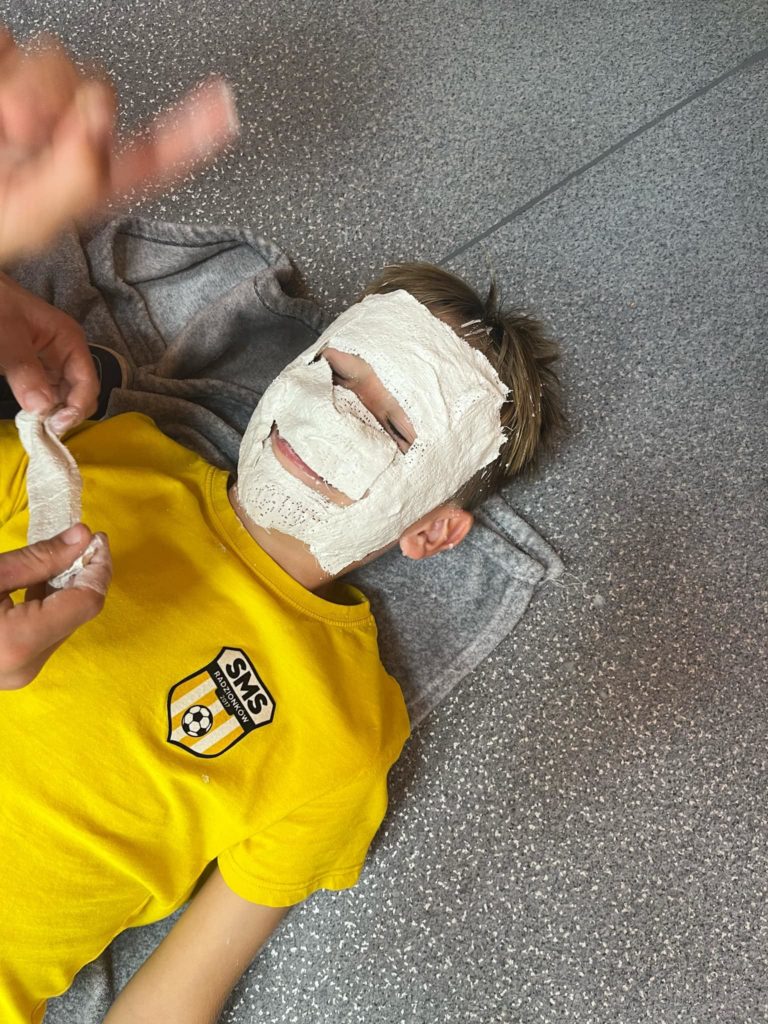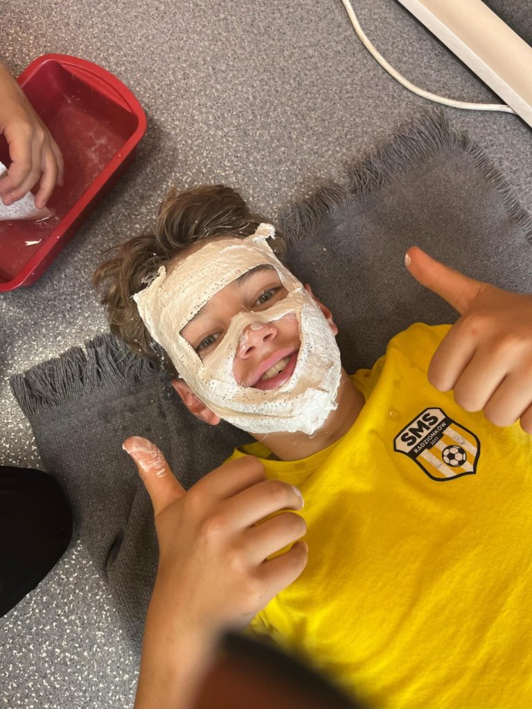 W naszym SMS-ie nie brakuje ciekawych i interesujących lekcji 😉. Klasa 5️⃣ podczas jednej z lekcji historii przeniosła się do Starożytnego Egiptu⚱️, gdzie niczym prawdziwi faraonowie zamienili się w… mumie! Zobaczcie sami ⤵️