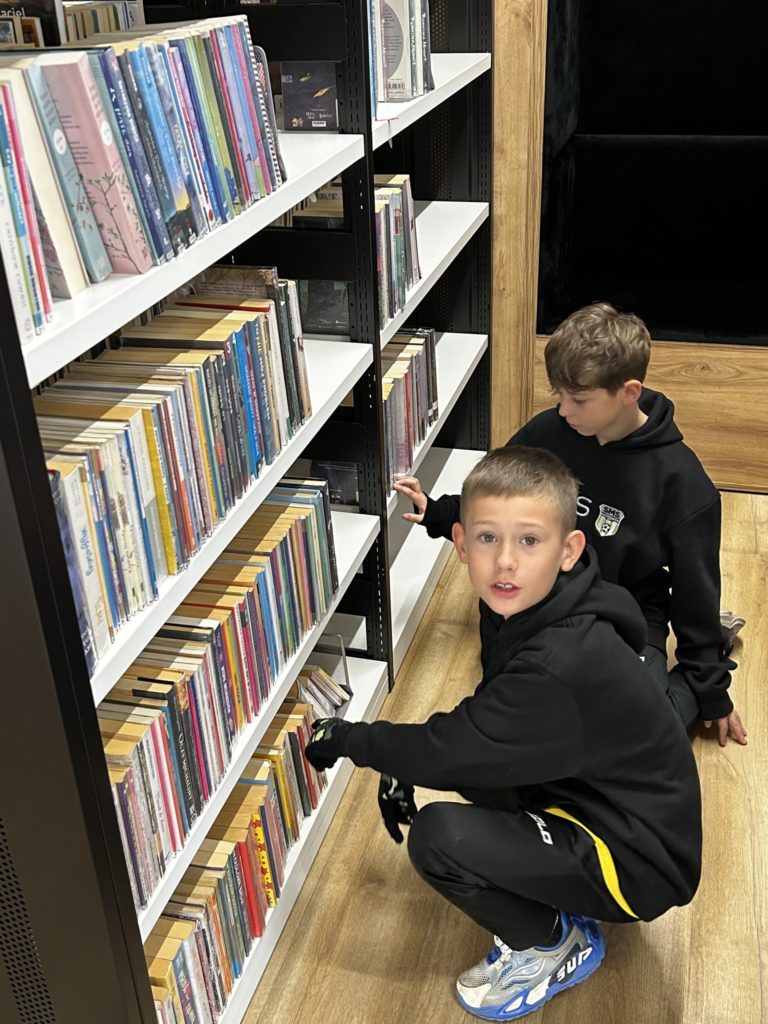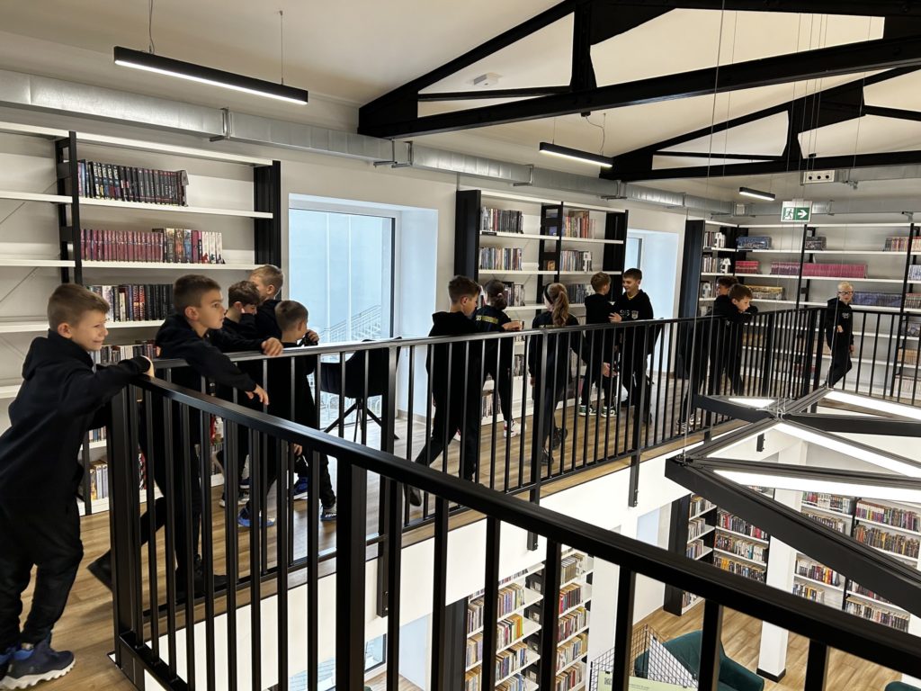 📚 W czwartek, 20 listopada 2025 r., klasa IV odwiedziła Miejską Bibliotekę Publiczną w Radzionkowie. Na początku spotkania pani Iwona Labus oprowadziła uczniów po nowoczesnym budynku 📖✨ i pokazała imponujące zbiory biblioteki. Uczniowie zajrzeli do wszystkich bibliotecznych zakamarków, w tym do kolorowego kącika wypoczynkowego dla dzieci 🌈💺. Później czekała ich praktyczna część – nauka wyszukiwania książek w katalogu 🔍💡. W parach świetnie poradzili sobie z odnajdywaniem tytułów dla dzieci i młodzieży! 👧🧒📚