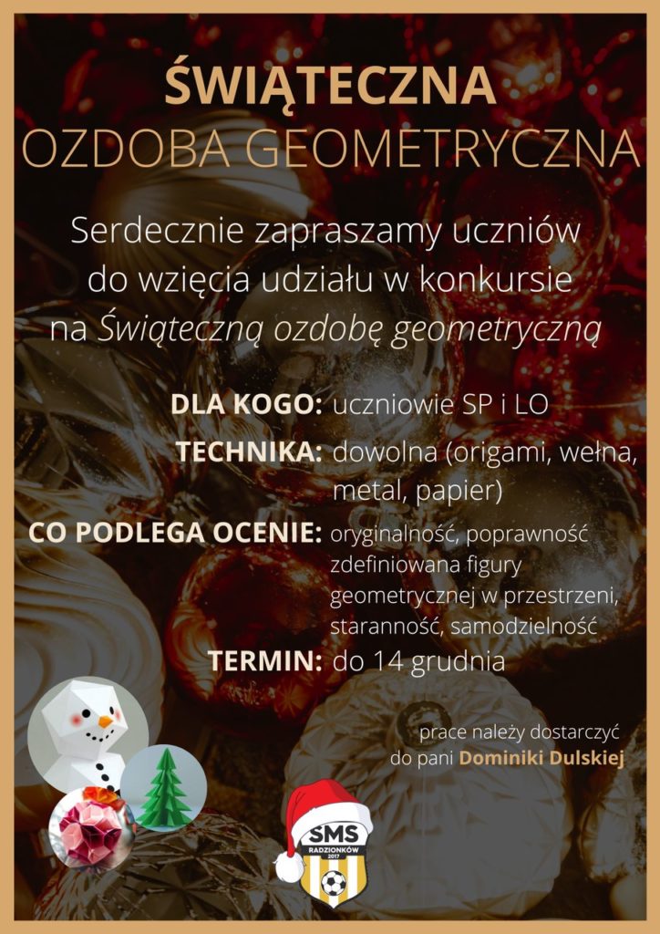 Serdecznie zapraszamy wszystkich uczniów naszej szkoły (SP oraz LO) do udziału w konkursie na „Świąteczną🌲 Ozdobę Geometryczną” ⤵️🎄