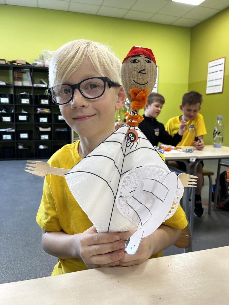 Uczniowie klasy 2️⃣ SP przy okazji omawiania zagadnień związanych z teatrem 🎭 wykonali na lekcji prześlicznej kukiełki 😍, których efekt prezentujemy w poniższej galerii zdjęć🔽