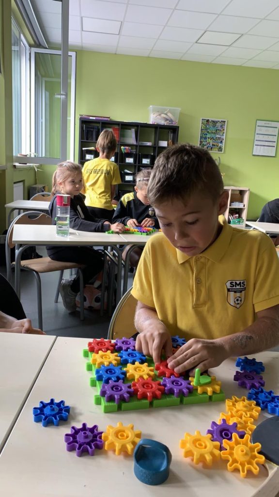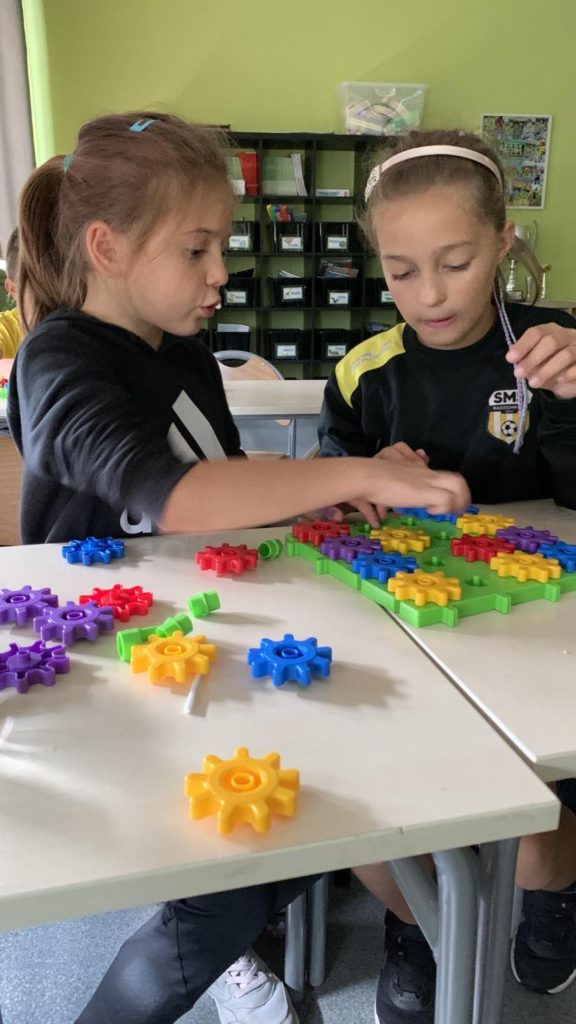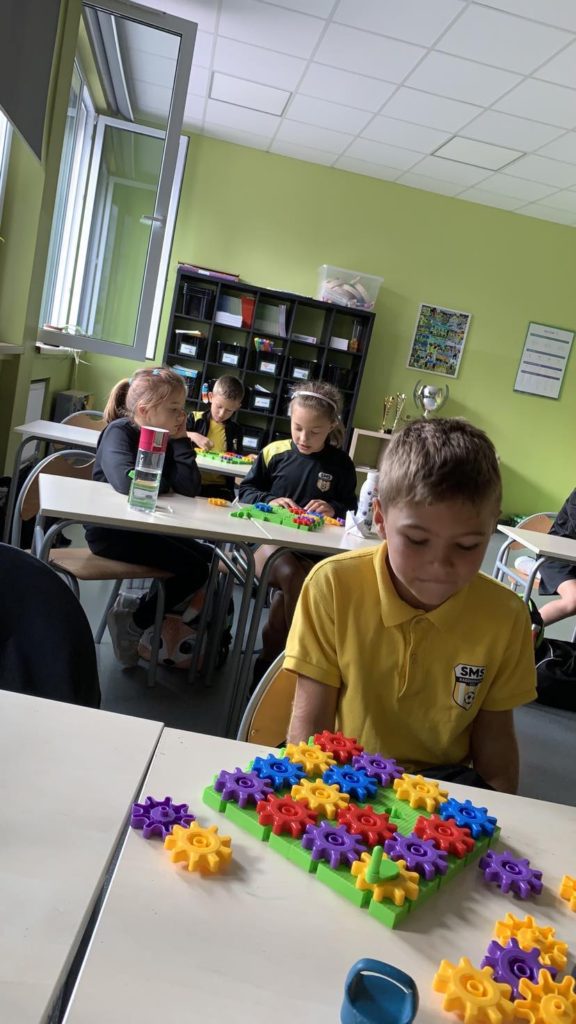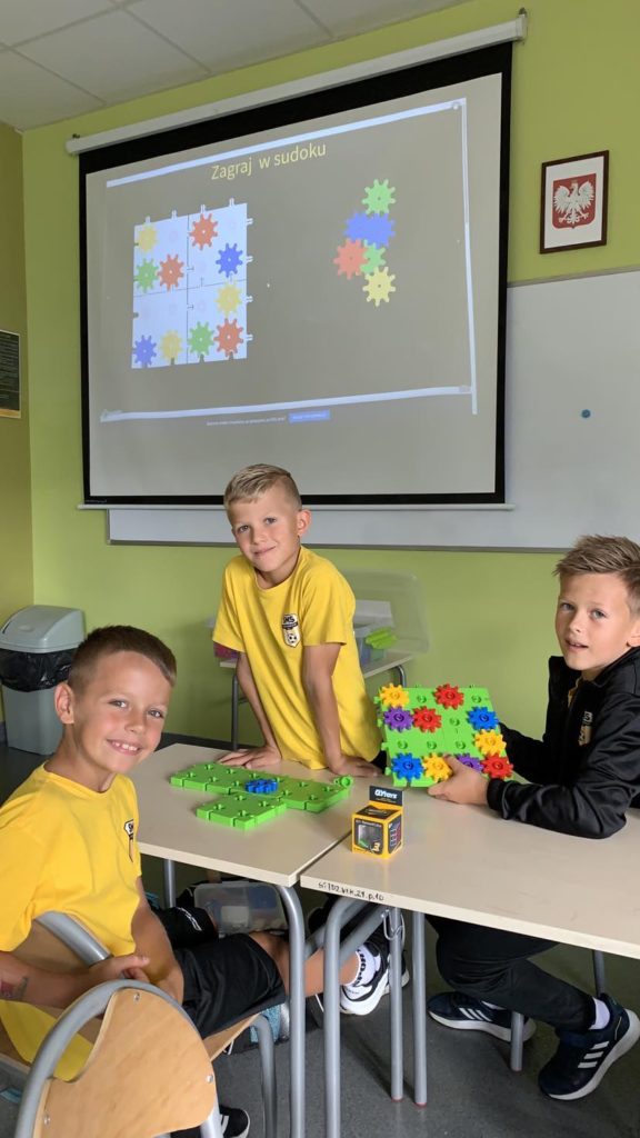 1️⃣5️⃣ września uczniowie klasy II mieli okazję zapoznać się z klockami Korbo zakupionymi w ramach programu „Laboratorium przyszłości”. Klocki dają wiele możliwości do rozwijania wyobraźni🧠, planowania oraz współdziałania, a nawet utrwalania zdobytej wiedzy w nietypowy sposób🧏‍♂️. Tego dnia uczniowie poprzez zabawę z klockami rozwijali umiejętność logicznego myślenia dzięki zadaniom: „pomyśl i przełóż” oraz poprzez układanie sudoku z kół zębatych. Lekcja👩‍🏫 minęła bardzo szybko i przyjemnie. Z pewnością klocki pojawią się na zajęciach jeszcze nieraz🤩.