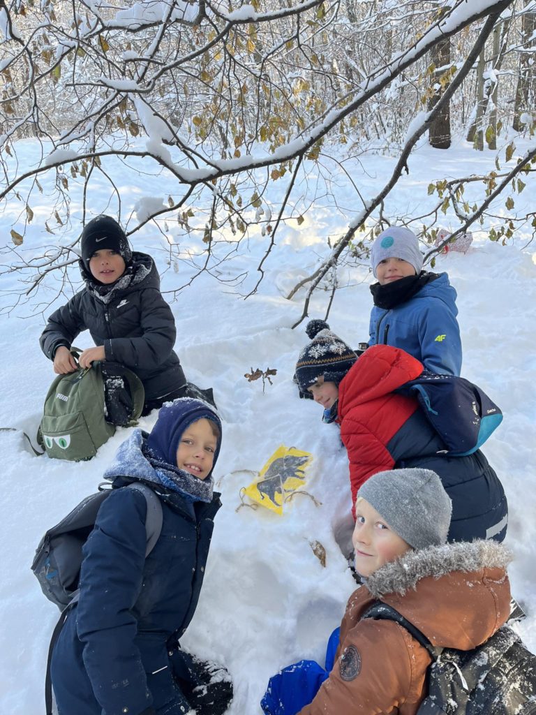 Z okazji Mikołajek uczniowie klas 1️⃣-3️⃣ wyruszyli do lasu🎄, aby odkryć tajemnice zniknięcia św. Mikołaja🎅. Podążając na śladami🐾, uczniowie poszukiwali ukrytych dla nich zadań i z ogromnym zapałem je rozwiązywali😍. Wśród zadań do wykonania były: zbudowanie sań🛷 św. Mikołaja, tworzenie świątecznych opowieści czy też przygotowanie syropu🥛 dla św. Mikołaja. Na końcu trasy czekała na nich przepyszna gorąca czekolada z piankami. To był wspaniale spędzony czas na świeżym powietrzu, a pogoda była niczym na zamówienie – idealna❄️.