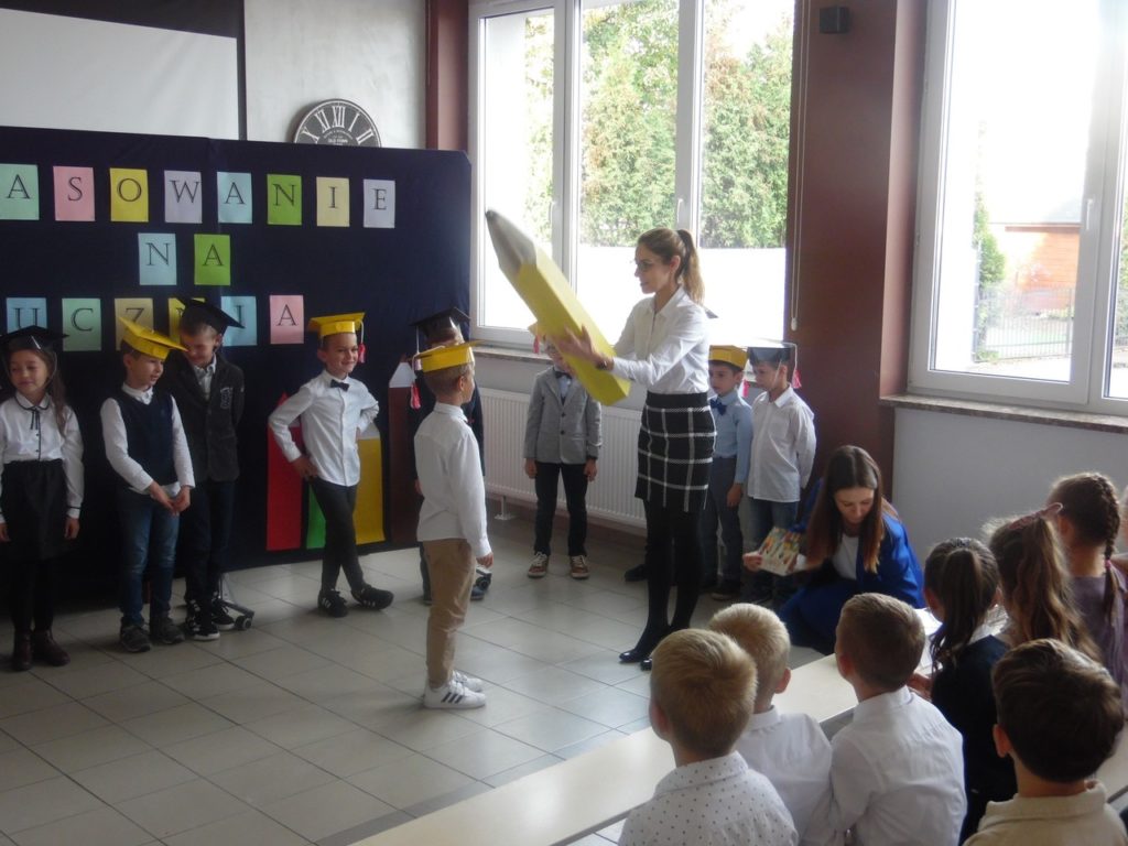 11 października odbyło się niezwykle ważne dla naszych pierwszoklasistów wydarzenie – uroczystość pasowania na ucznia 🎒. Tego dnia uczniowie klasy I oficjalnie zostali przyjęci w poczet uczniów SMS-u 🟡⚫️. Po ślubowaniu klasa II powitała swoich młodszych kolegów wesołą piosenką oraz wręczyła pamiątkowe upominki.