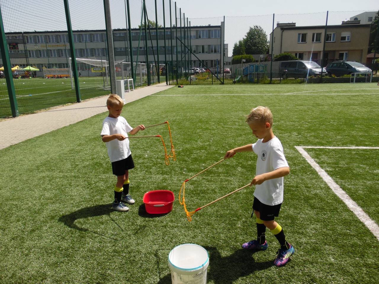 Drugiego dnia na boisku przy ul. Knosały 113 wszyscy kibice piłki nożnej mogli liczyć na mnóstwo dodatkowych atrakcji (szczególnie dla najmłodszych 😍). Nie zabrakło dmuchanego zamku, malowania buzi, puszczania baniek mydlanych i oczywiście słodkich przekąsek oraz grilla.