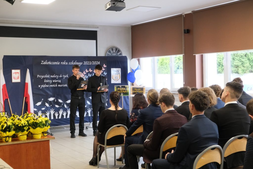 2️⃣6️⃣ kwietnia 2024 r. społeczność SMS Radzionków podczas uroczystej akademii pożegnała tegorocznych maturzystów🎓 SMS Radzionków. Jak co roku, był to dzień pełen wzruszeń i licznych wspomnień😢. Nasi absolwenci odebrali świadectwa 📜ukończenia szkoły z rąk pani dyrektor i wychowawczyni klasy, a młodsi uczniowie w pięknych słowach pożegnali swoich kolegów życząc im oczywiście powodzenia na maturze💪. Nie zabrakło też corocznego filmu i prezentacji ze wspomnieniami i wydarzeniami z klasą 4️⃣ LO w roli głównej. Uczniowie otrzymali również pamiątkowe medale🏅 i drobne upominki.