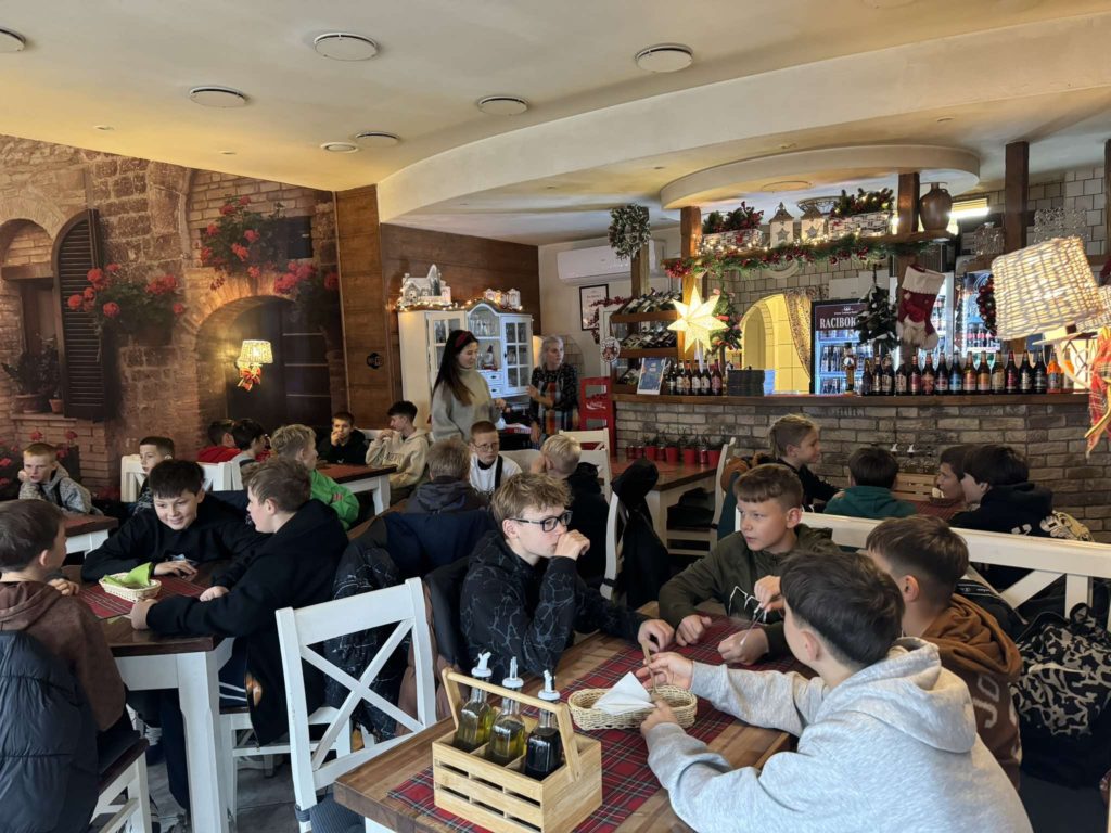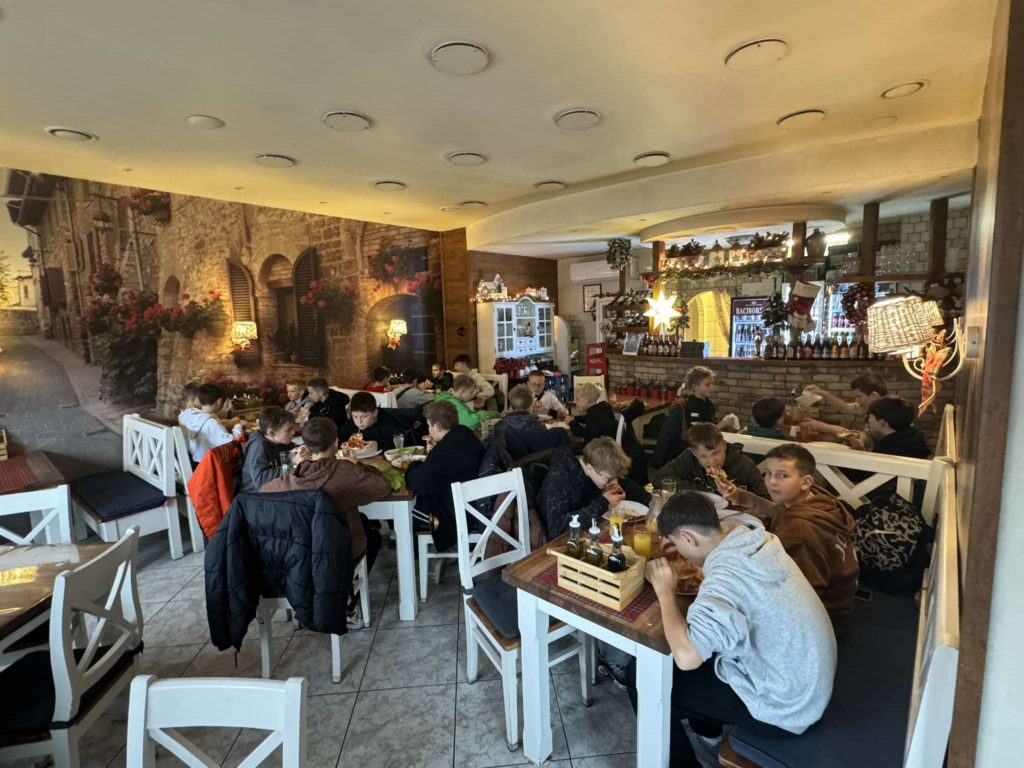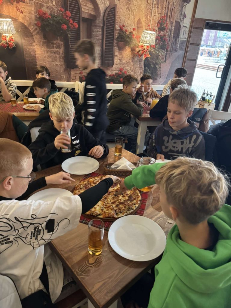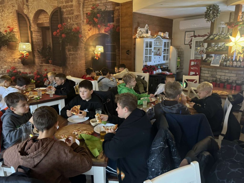 1️⃣7️⃣ grudnia 2024 r. uczniowie klasy 6️⃣ wybrali się na przedświąteczny wyjazd do kina🎬 i na pizzę🍕. Po obejrzeniu „Czerwonej Jedynki” był czas na spacer, integrację oraz oczywiście pyszną pizzę, którą nasi sportowcy uwielbiają!🤩 Po jesiennej rundzie piłkarze zasłużyli na chwilę odpoczynku od nauki oraz dużo radości. Serdecznie dziękujemy za opiekę nad chłopakami: p. N. Kościelny i p. N. Krytowskiej.