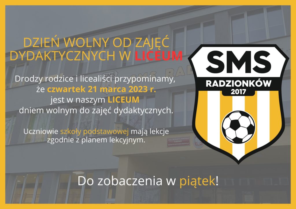 SMS DEV R > Blog > Informacje > Przypominamy, że czwartek 2️⃣1️⃣ marca 2024 r. jest w naszym 🅛🅘🅒🅔🅤🅜 dniem wolnym od zajęć dydaktycznych🔽