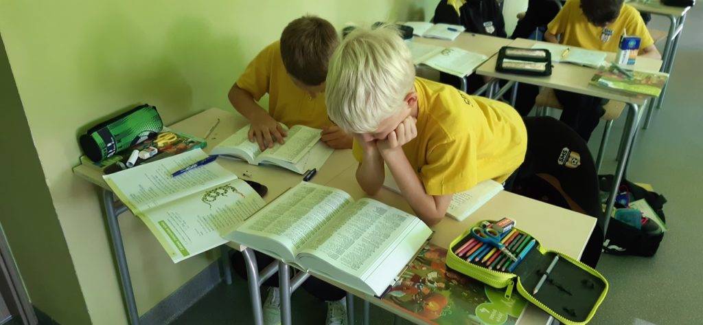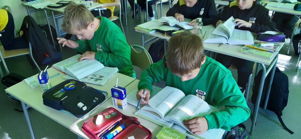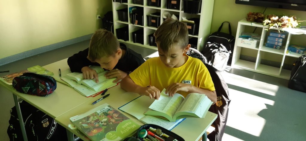 W ostatnim czasie uczniowie klas IV – VI podczas lekcji języka polskiego poznawali różne rodzaje słowników 📚, w które zaopatrzony jest nasz SMS. Uczyli się wyszukiwania informacji 🧐 i przekonali, że poprawna pisownia jest niezwykle ważna✔️!
