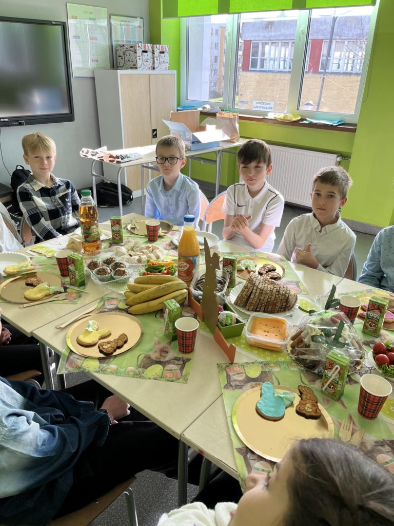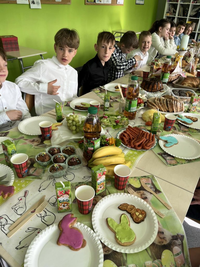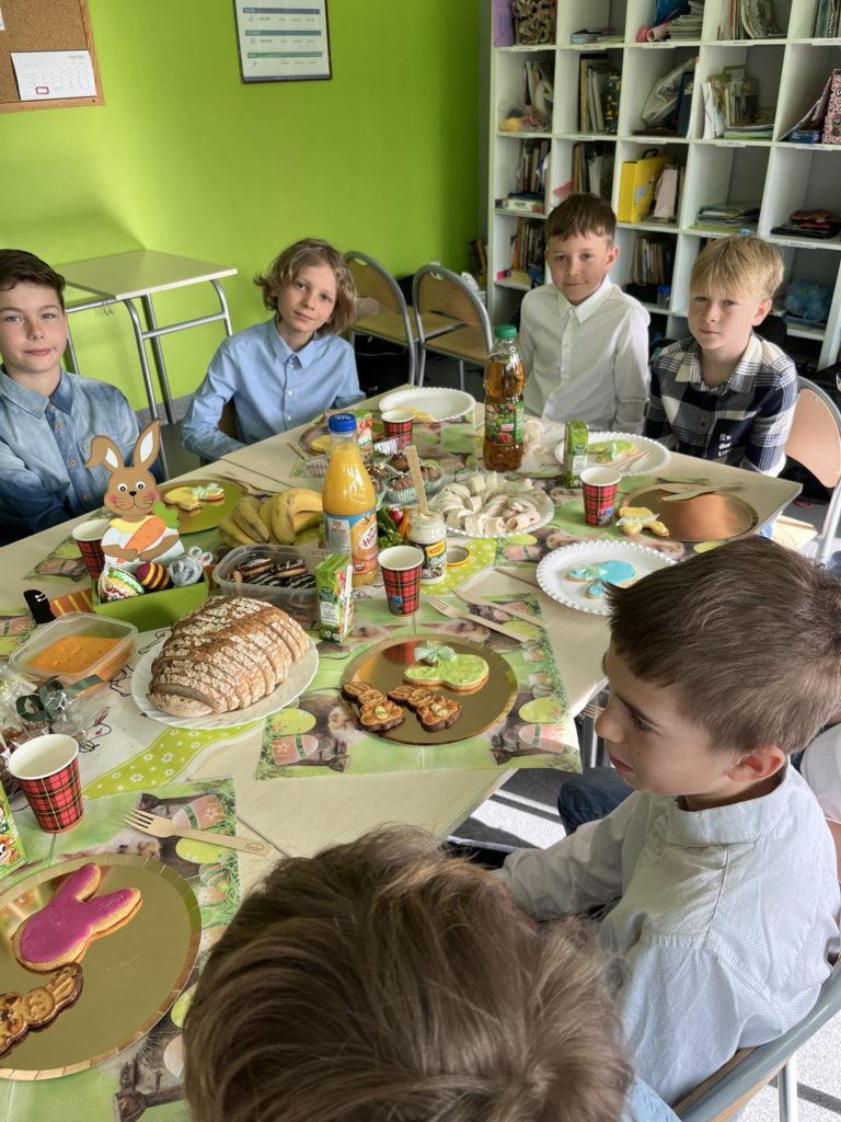 W przeddzień „Wiosennej przerwy świątecznej” uczniowie klasy 4️⃣ wraz ze swoją panią wychowawczynią oraz trenerami mieli okazję spędzić miło czas podczas klasowego wielkanocnego śniadania. Uczniowie klasy 4️⃣ życzą wszystkim WESOŁYCH I PIĘKNYCH ŚWIĄT 🐥🐰
