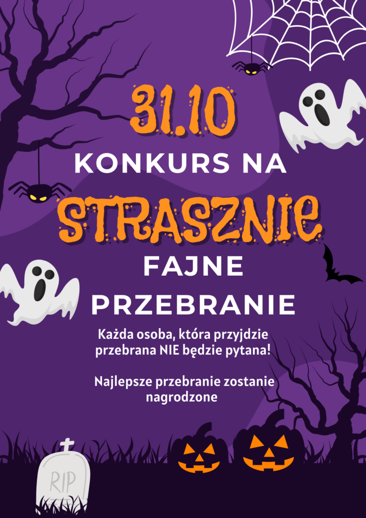 Już w najbliższy wtorek 3️⃣1️⃣ października zapraszamy wszystkich chętnych uczniów do udziału w konkursie na „Strrrrasznie fajne przebranie” ⤵️. Na zwycięzcę czeka strrrraszna nagroda 🎁🧟♀️