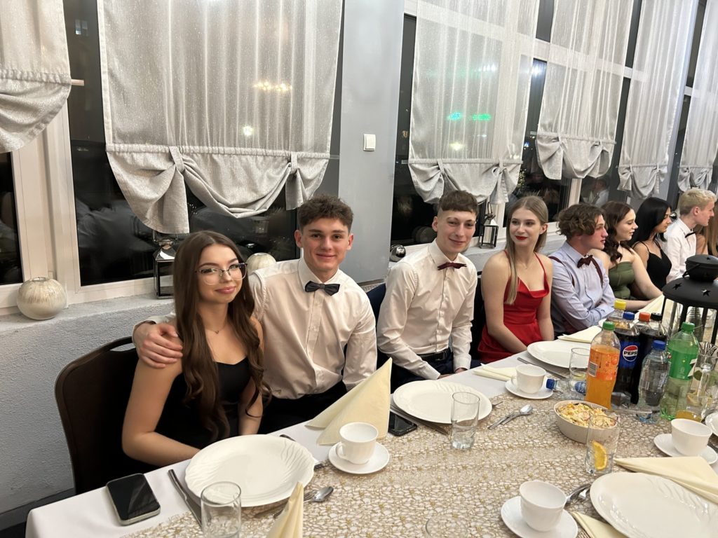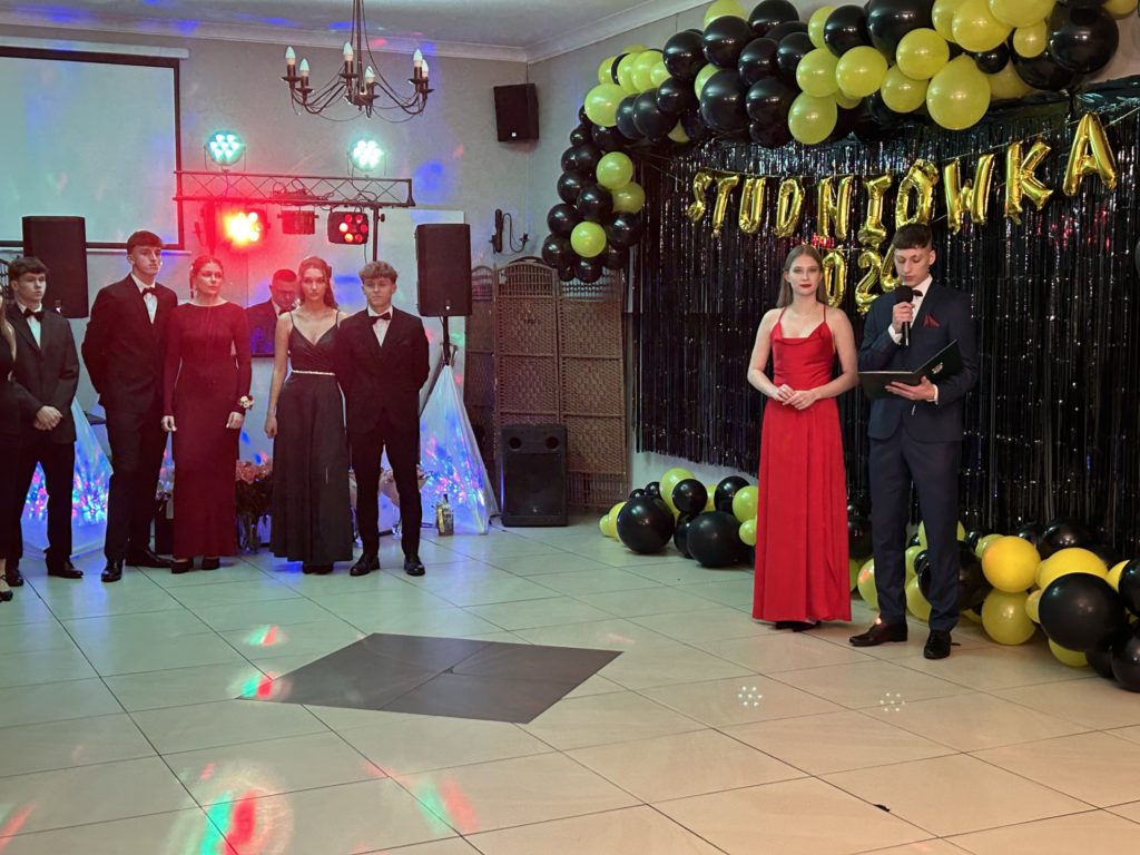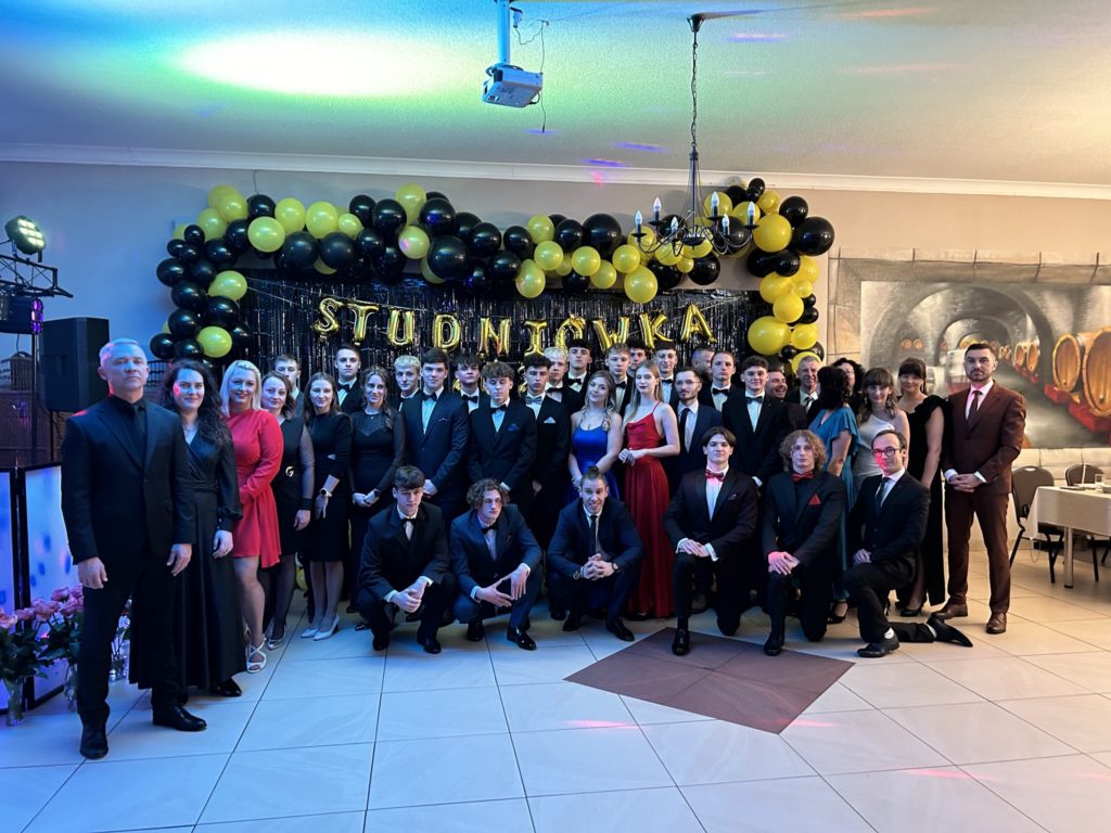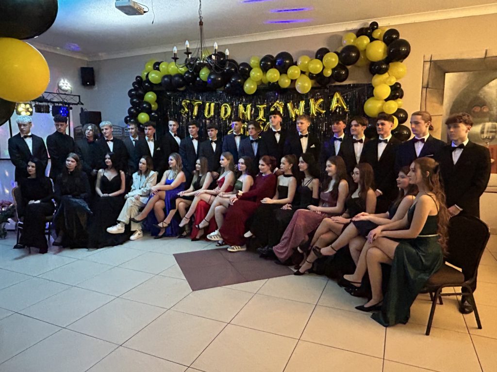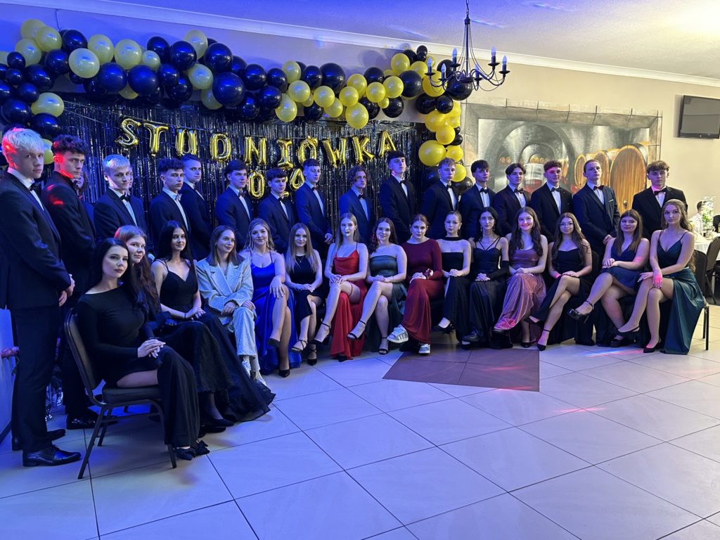 2️⃣6️⃣ stycznia 2024 r. w restauracji „Figaro” w Radzionkowie tegoroczni maturzyści świętowali swoje 💯 dni do matury. Przepięknie zatańczony polonez🕺, mnóstwo uśmiechu🥳, wspaniała zabawa oraz niepowtarzalna atmosfera – w ten sposób można podsumować studniówkowy💯 wieczór. Nasi maturzyści stanęli na wysokości zadania i swoją klasą pokazali, że Szkoła Mistrzostwa Sportowego Radzionków kształci nie tylko świetnych sportowców, ale i wspaniałych ludzi. W imieniu nauczycieli i wszystkich zgromadzonych gości dziękujemy za zaproszenie na bal i zaczynamy trzymać kciuki za pomyślnie zdane majowe egzaminy dojrzałości 🤞