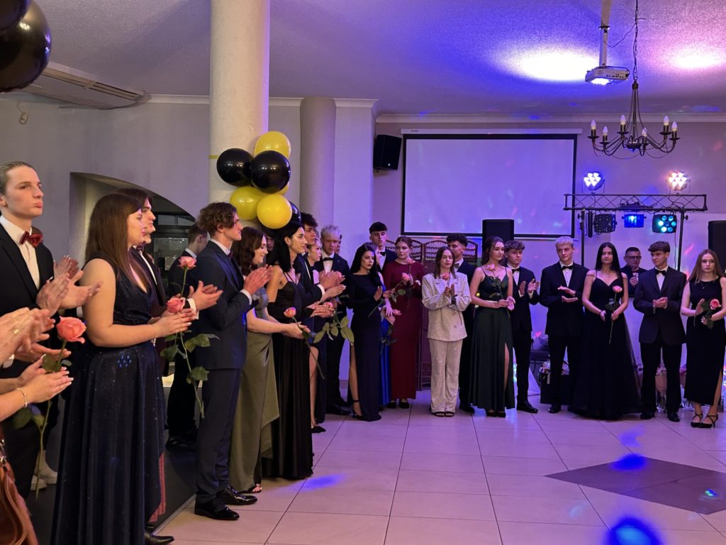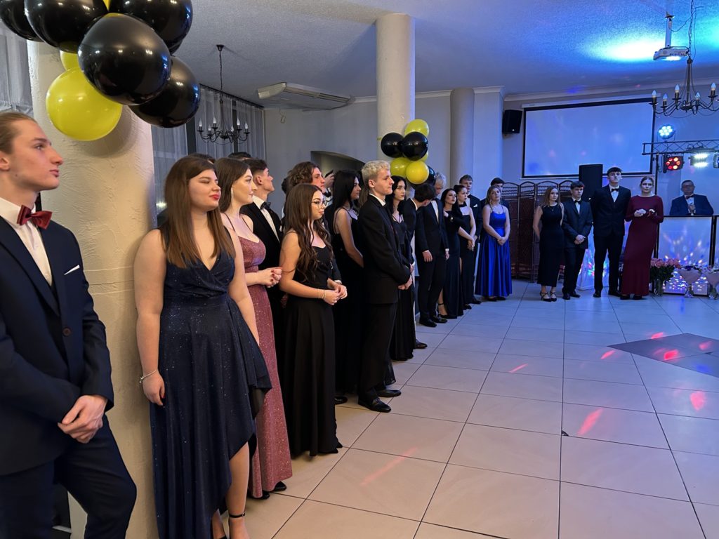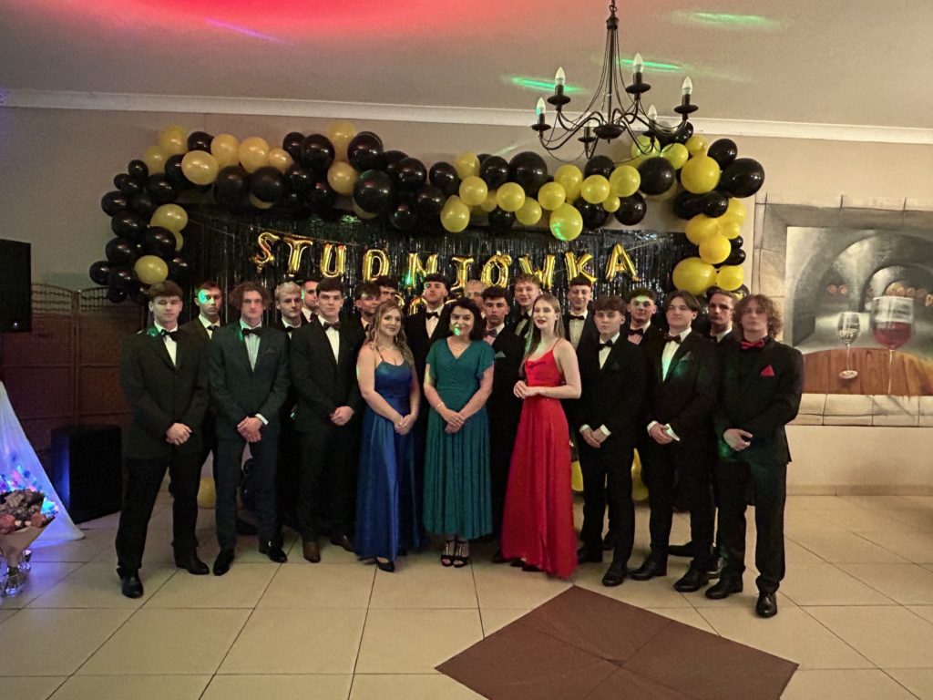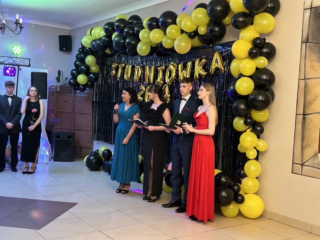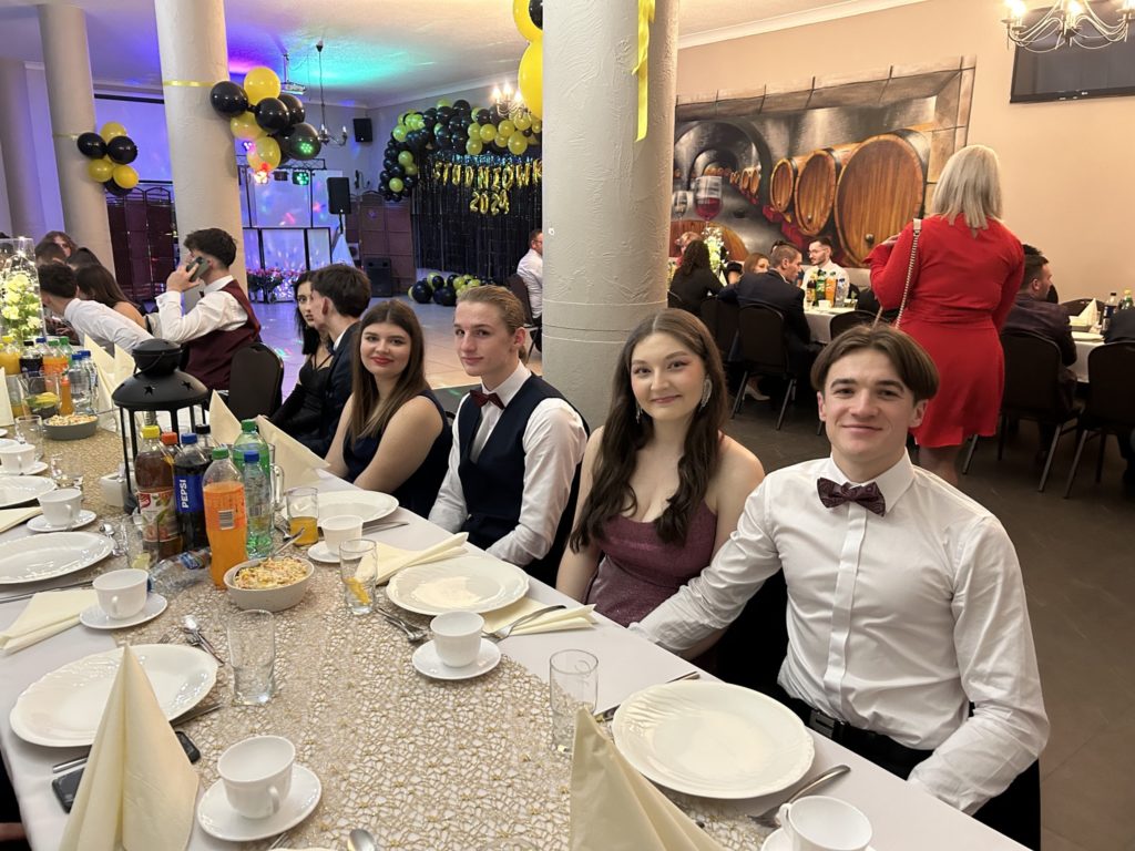 2️⃣6️⃣ stycznia 2024 r. w restauracji „Figaro” w Radzionkowie tegoroczni maturzyści świętowali swoje 💯 dni do matury. Przepięknie zatańczony polonez🕺, mnóstwo uśmiechu🥳, wspaniała zabawa oraz niepowtarzalna atmosfera – w ten sposób można podsumować studniówkowy💯 wieczór. Nasi maturzyści stanęli na wysokości zadania i swoją klasą pokazali, że Szkoła Mistrzostwa Sportowego Radzionków kształci nie tylko świetnych sportowców, ale i wspaniałych ludzi. W imieniu nauczycieli i wszystkich zgromadzonych gości dziękujemy za zaproszenie na bal i zaczynamy trzymać kciuki za pomyślnie zdane majowe egzaminy dojrzałości 🤞