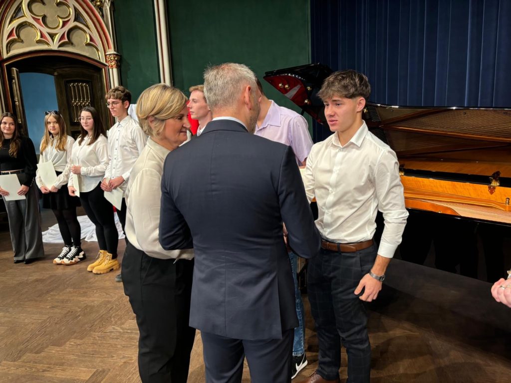 2️⃣ grudnia 2024 r. w murach Ogólnokształcącej Szkoły Muzycznej w Bytomiu odbyło się oficjalne wręczenie Stypendiów Prezesa Rady Ministrów. Stypendystą📃 naszej szkoły na rok szkolny 2️⃣0️⃣2️⃣4️⃣/2️⃣0️⃣2️⃣5️⃣ został uczeń klasy IV Niepublicznego Liceum Ogólnokształcącego – 𝗝𝗔𝗞𝗨𝗕 𝗟𝗔𝗠𝗣𝗔. Jakubowi serdecznie gratulujemy i życzymy samych sportowo-edukacyjnych sukcesów.