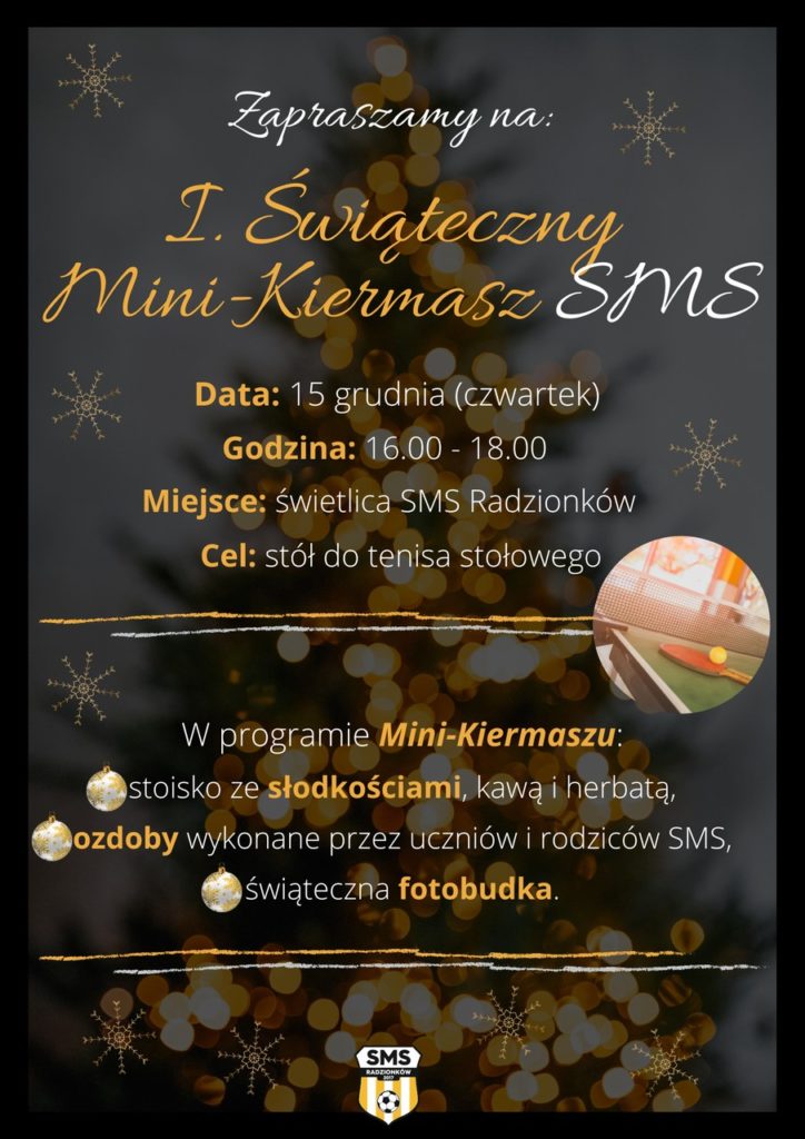 Serdecznie zapraszamy na „1️⃣. Świąteczny Mini-Kiermasz SMS”🎄🌲👇