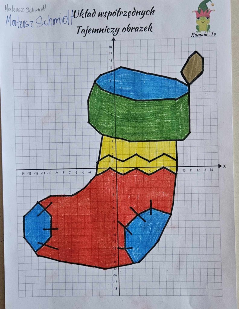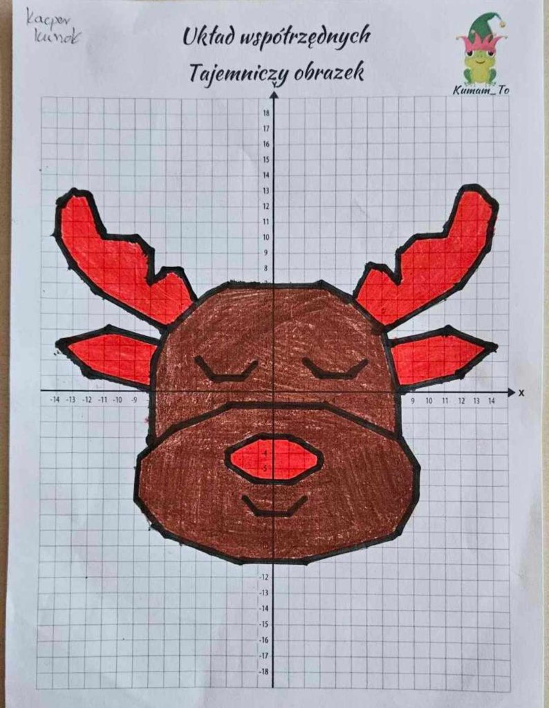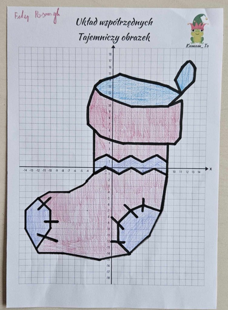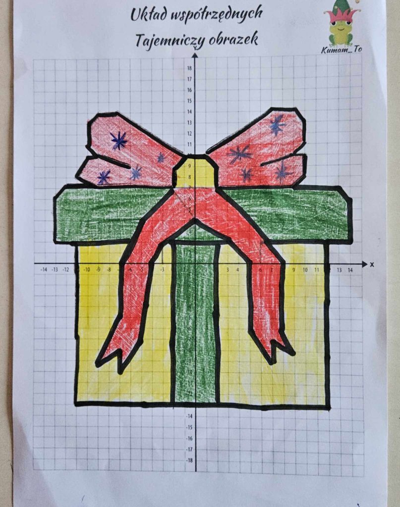 Klasa 7️⃣ na ostatniej przedświątecznej lekcji matematyki🧮 sprawdzała swoje nowo poznane umiejętności zaznaczania punktów w układzie współrzędnych⬆️⬅️⬇️➡️. Oczywiście nie mogło zabraknąć świątecznego klimatu i wszystkie „obrazki ” utworzone z odpowiednich kodów nawiązywały do Świąt Bożego Narodzenia 🎅🧤❄️⭐