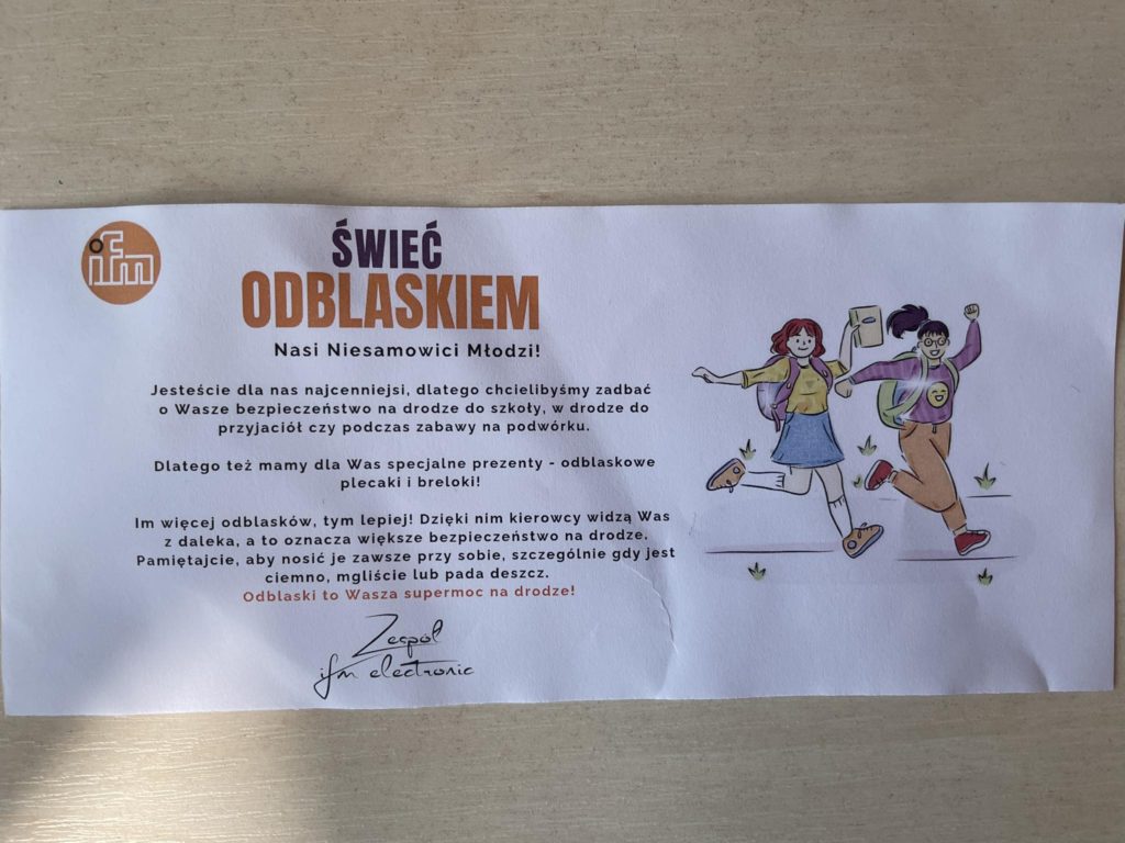 Serdeczne podziękowania dla firmy ifm electronic💡🔌 za ufundowanie uczniom naszej 5️⃣ klasy odblaskowych plecaków i gadżetów. Od dziś nasze „piątaki” będą jeszcze mocniej świecić przykładem.
