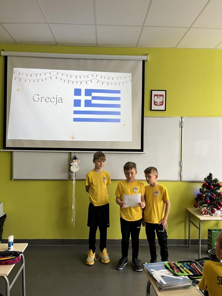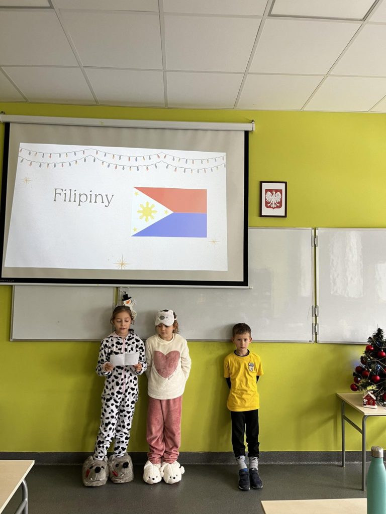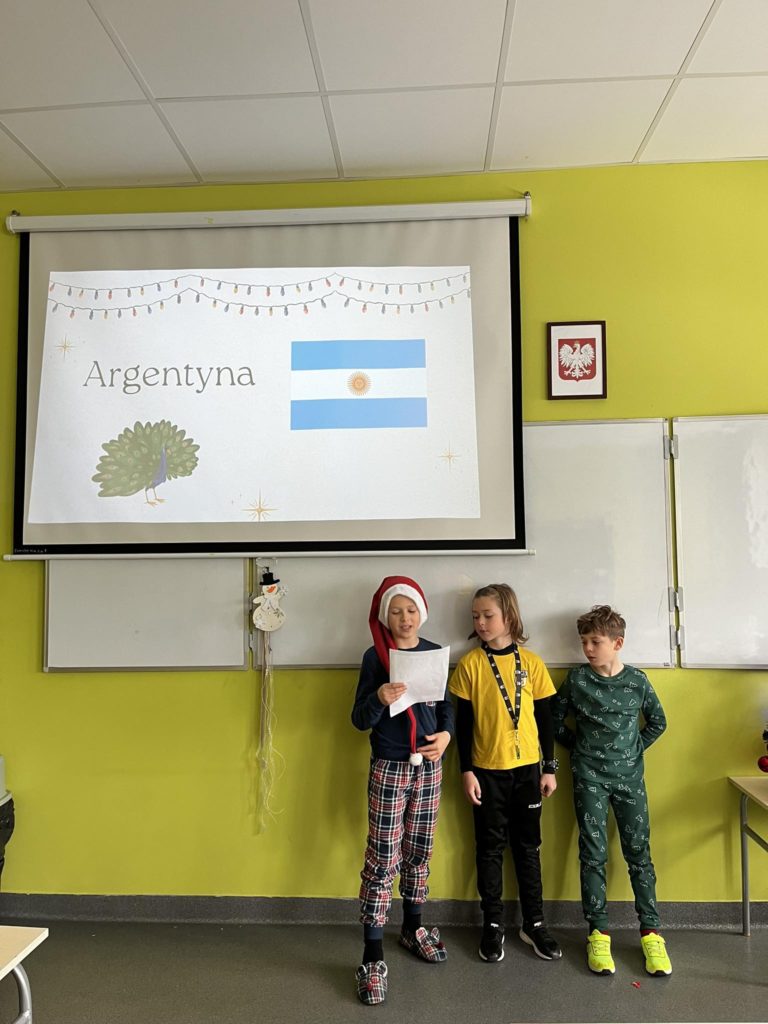 Przy okazji mikołajkowego tygodnia klasa 2️⃣ wybrała się w podróż po krajach dowiadując się jakie tradycje świąteczne i zwyczaje panują w takich państwach jak: Francja, Grecja, Hiszpania, Filipiny oraz Argentyna. Uczniowie między innymi dowiedzieli się, że prezenty może przynosić nie tylko św. Mikołaj🎅, a choinka w niektórych krajach musi rywalizować z przepięknie oświetlonymi statkami.