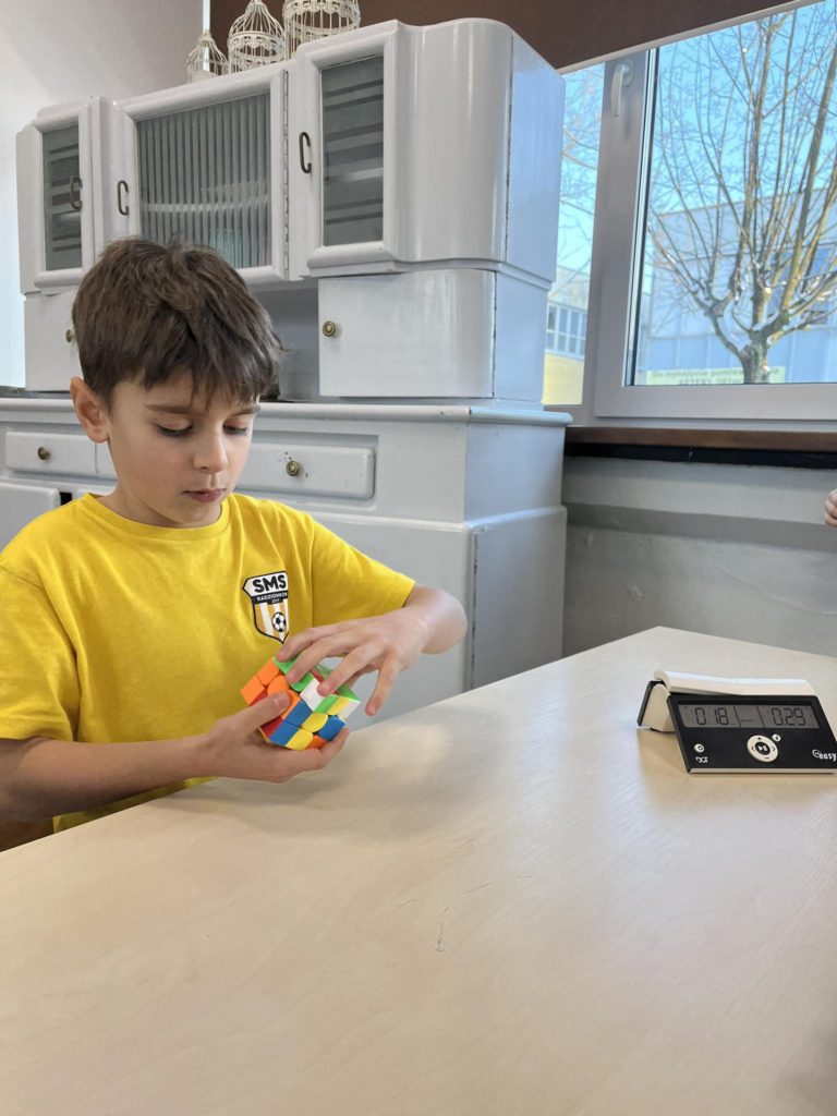 2️⃣9️⃣ listopada 2023 r. podczas zajęć świetlicowych odbył się pierwszy „Turniej Kostki Rubika dla klas 1️⃣-3️⃣”. Uczestnicy mieli dwie próby na jak najszybsze ułożenie kostki 3×3🎛. Uczniom towarzyszyły ogromne emocje! Również dopingujący ich uczniowie z zapartym tchem śledzili każdy ruch ręki✋ naszych startujących chłopaków.